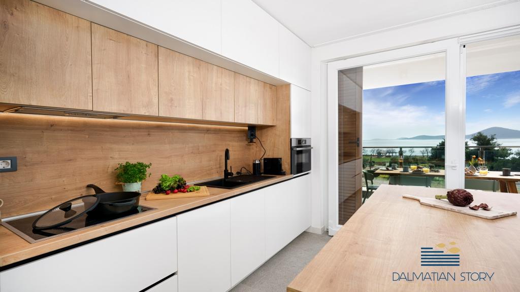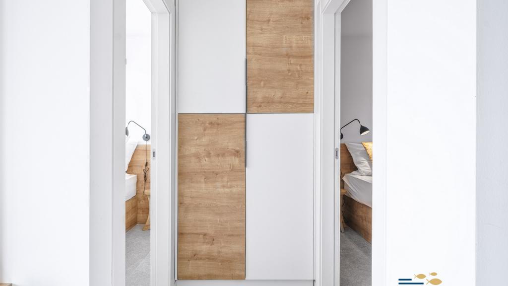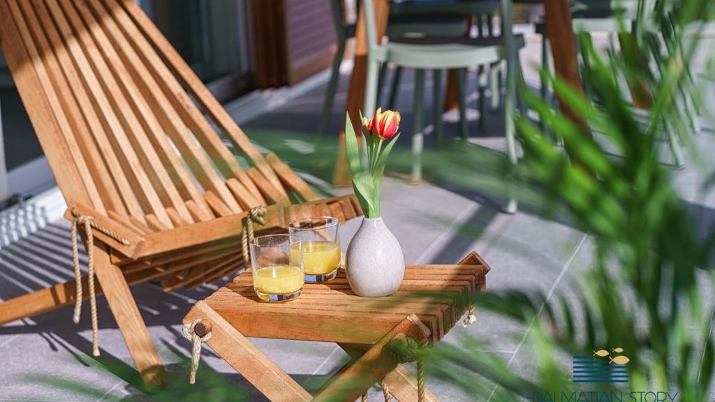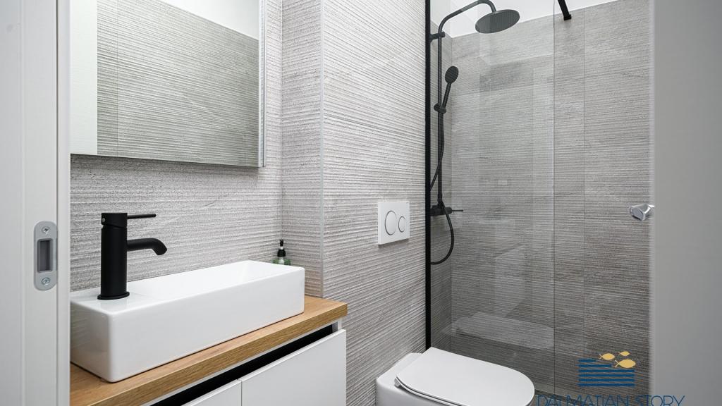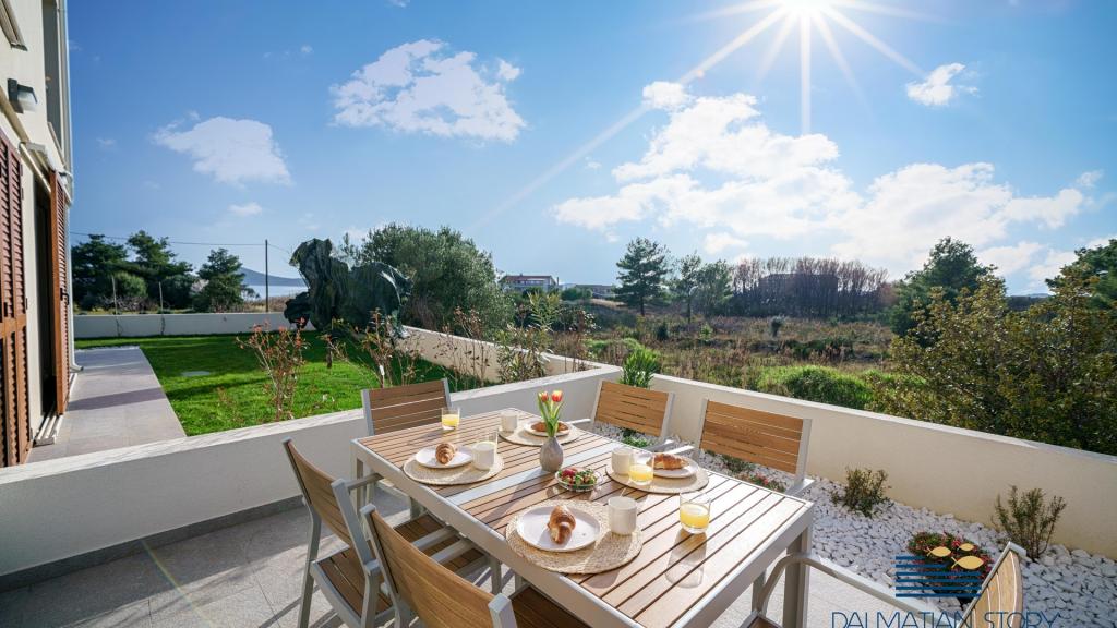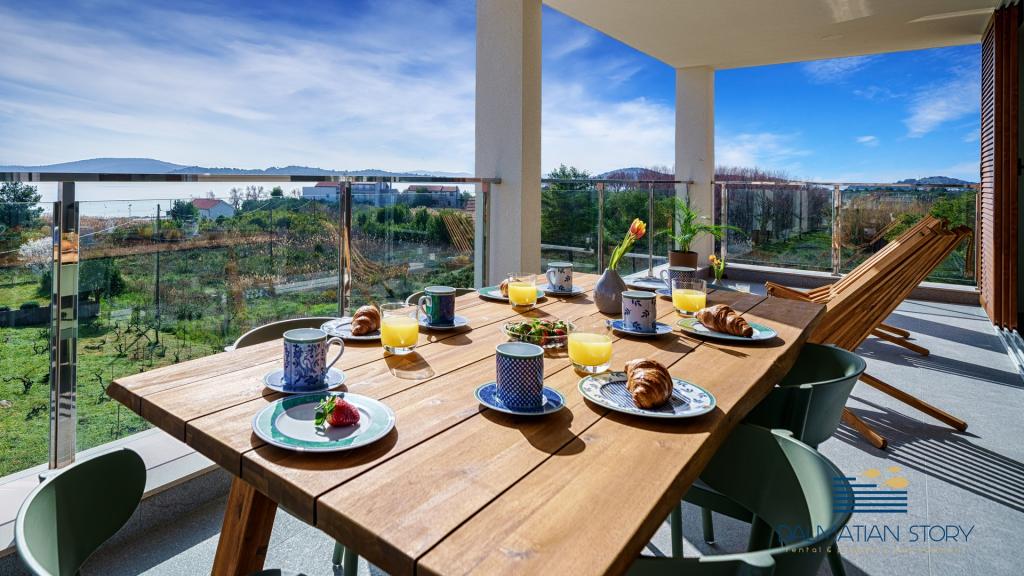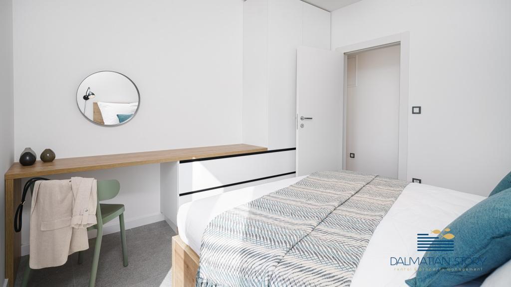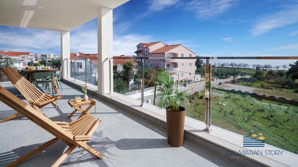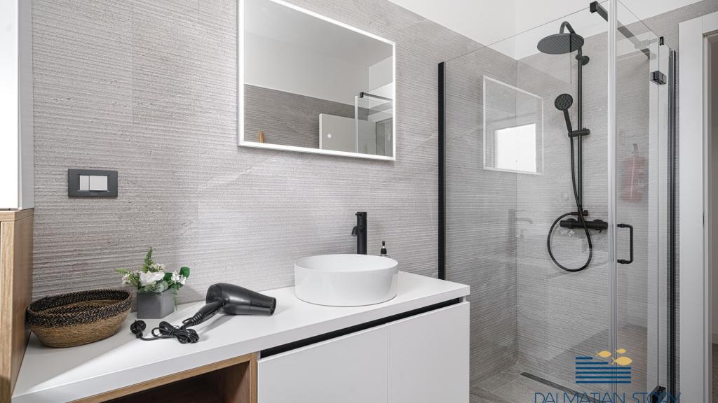Nově zrekonstruované a vybavené apartmány Maris jen 150m od pláže v klidné části Vodice. V přízemí se nachází Apartmán Maris 1 se 2 ložnicemi o celkové ploše 65 m2, byt se skládá z kuchyně, jídelny a obývacího pokoje jako jeden celek se vstupem na malou oplocenou zahradu a terasu s posezením, 1 ložnice s manželskou postelí a 1 ložnice pokoj se dvěma samostatnými lůžky a koupelnou, samostatný vchod a parkovací místo ve dvoře. Ideální pobyt pro 4 osoby. Ve 2. patře se nachází apartmán Maris 2 se 3 ložnicemi a 2 koupelnami 110m2, apartmán se skládá z plně vybavené a vybavené kuchyně, jídelny a obývacího pokoje jako jeden celek se vstupem na krytou terasu s krásným výhledem na moře a přilehlé ostrovy.prostor pro posezení a užívání si slunce, 2 koupelny a 3 ložnice, z nichž dvě jsou vybaveny manželskou postelí a jeden pokoj se dvěma samostatnými lůžky. Byt je klimatizovaný, má internetové připojení, parkování.