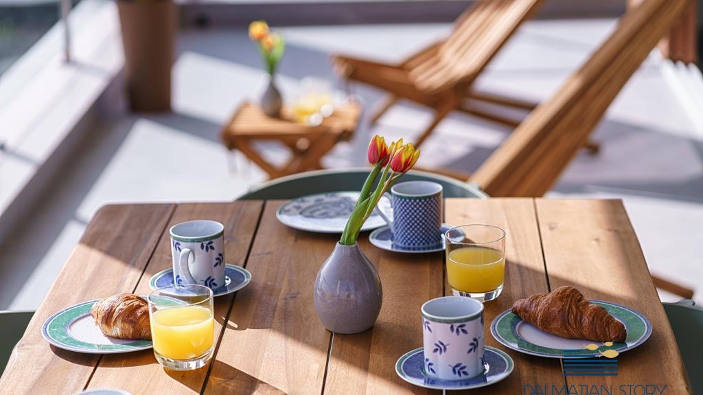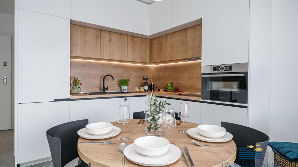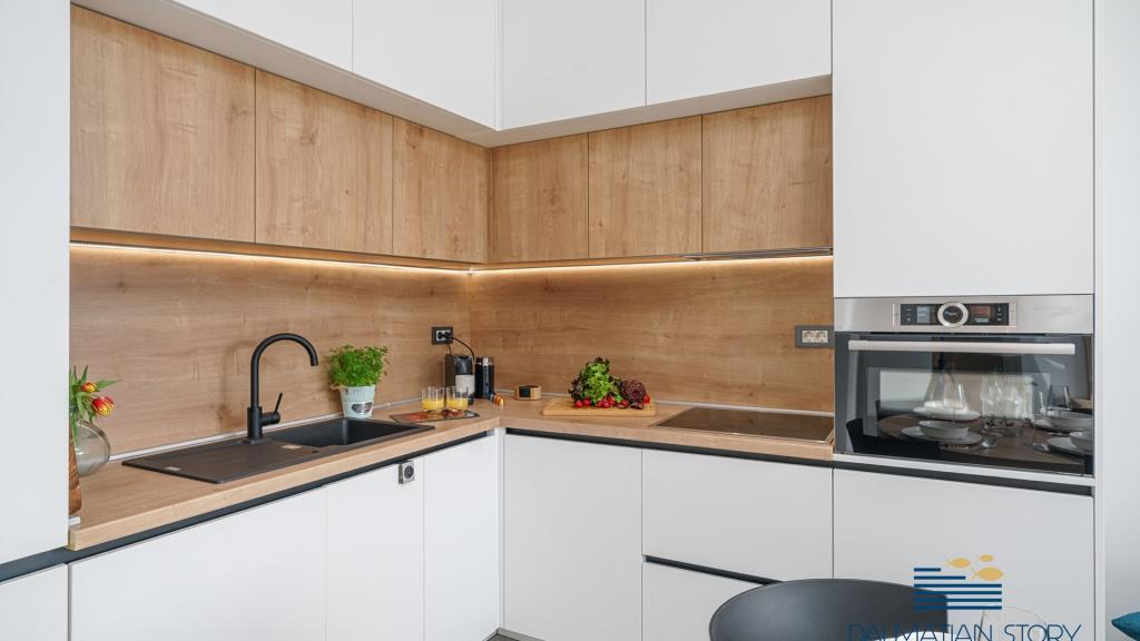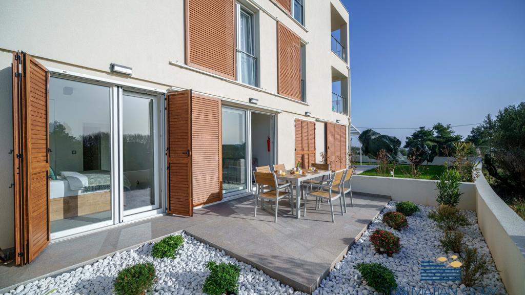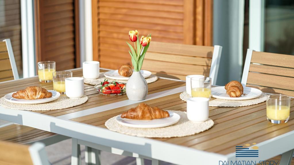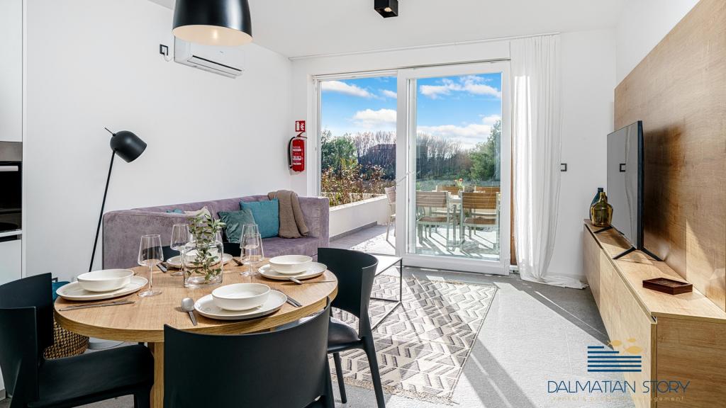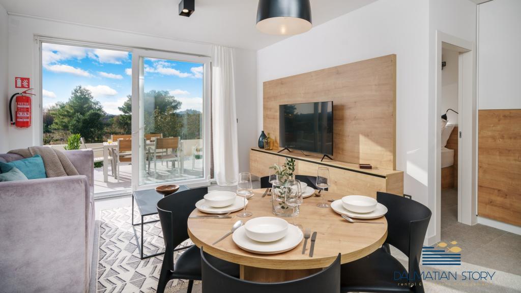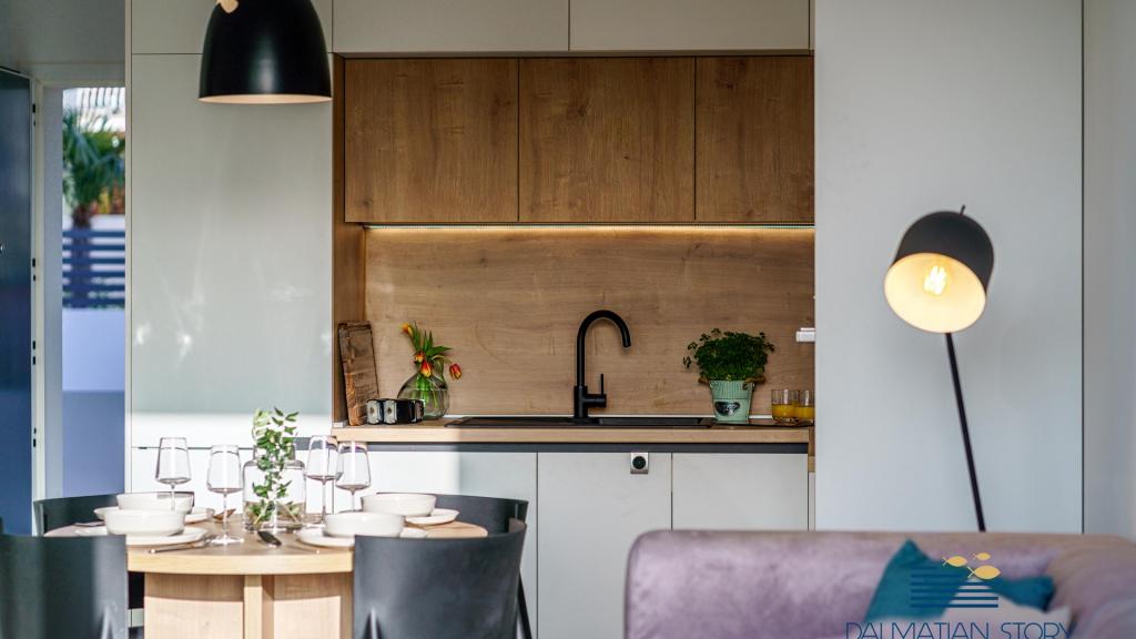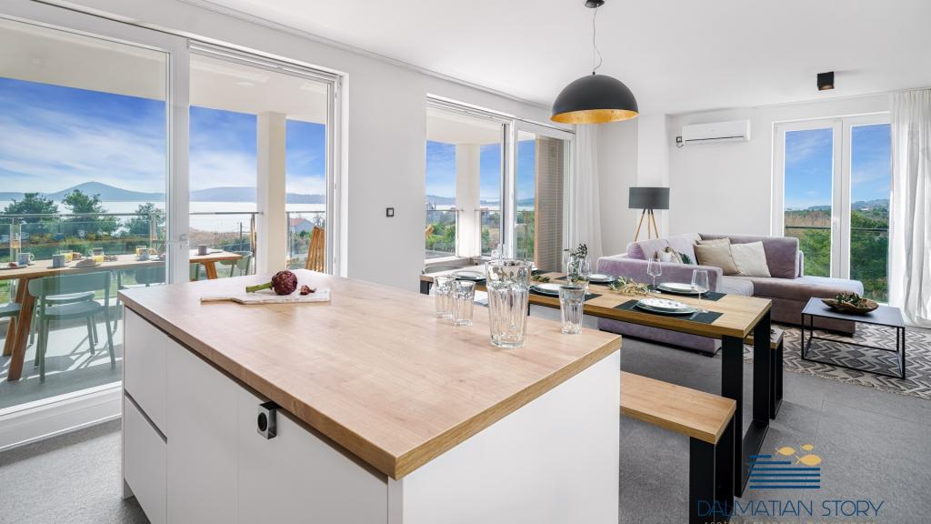 Nově zrekonstruované a vybavené apartmány Maris jen 150m od pláže v klidné části Vodice. V přízemí se nachází Apartmán Maris 1 se 2 ložnicemi o celkové ploše 65 m2, byt se skládá z kuchyně, jídelny a obývacího pokoje jako jeden celek se vstupem na malou oplocenou zahradu a terasu s posezením, 1 ložnice s manželskou postelí a 1 ložnice pokoj se dvěma samostatnými lůžky a koupelnou, samostatný vchod a parkovací místo ve dvoře. Ideální pobyt pro 4 osoby. Ve 2. patře se nachází apartmán Maris 2 se 3 ložnicemi a 2 koupelnami 110m2, apartmán se skládá z plně vybavené a vybavené kuchyně, jídelny a obývacího pokoje jako jeden celek se vstupem na krytou terasu s krásným výhledem na moře a přilehlé ostrovy.prostor pro posezení a užívání si slunce, 2 koupelny a 3 ložnice, z nichž dvě jsou vybaveny manželskou postelí a jeden pokoj se dvěma samostatnými lůžky. Byt je klimatizovaný, má internetové připojení, parkování.