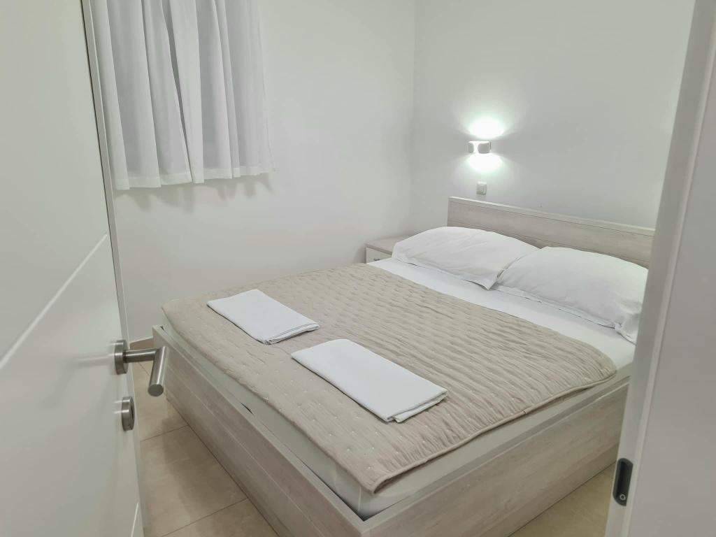 Apartmány se nacházejí v přízemí a v prvním patře nově zrekonstruovaného rodinného domu. Apartmány se skládají z ložnice s manželskou postelí, obývacího pokoje s rozkládací pohovkou, kuchyně a koupelny. Byt, který se nachází v prvním patře, má balkon. Nacházejí se minutu chůze od první kavárny, pekárny, obchodu, dvě minuty chůze od nábřeží a nejbližší pláž je vzdálena 7-8 minut chůze.