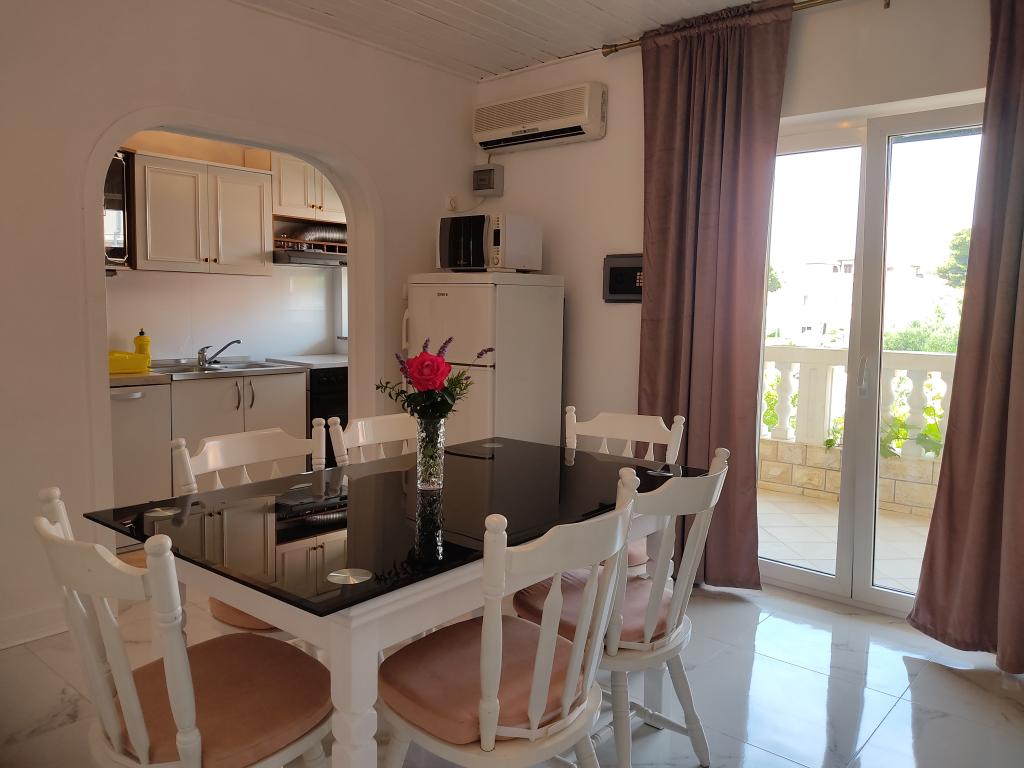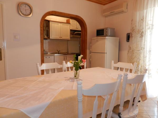 Apartmány jsou situovány v klidné ulici, dvě minuty chůze na pláž a méně než pět minut chůze od centra města. Díky skvělému umístění jsou apartmány velmi vhodné pro rodiny s malými dětmi. Všechny naše apartmány jsou čisté a pohodlné, mají balkon nebo terasu, jsou vybaveny klimatizací, vysokorychlostním připojením k internetu a satelitní TV. Na terase, která je pokryta vinnou révou je velký gril a je k dispozici všem našim hostům. Každý apartmán má vlastní parkovací místo ve dvoře. Cena pronájmů apartmánů závisí na délce a období pobytu. Nabízíme také slevy pro dlouhodobé pobyty.
