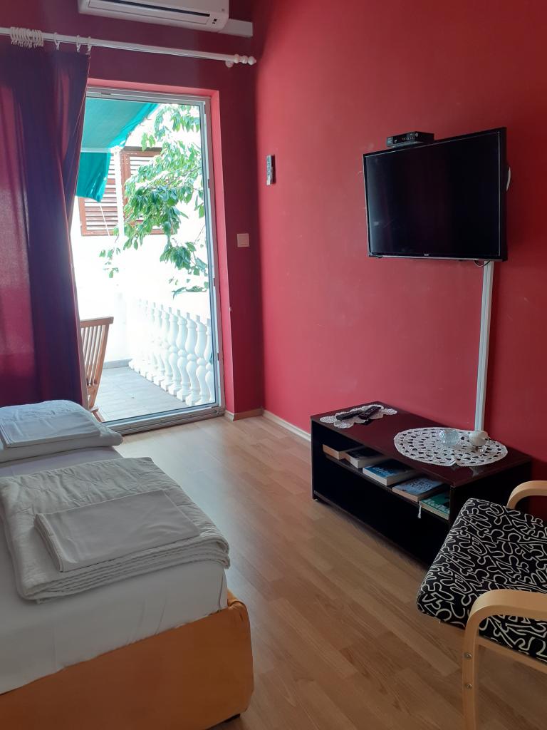Staromódní, ale pohodlné a vzdušné ubytování. Apartmány jsou vybaveny základními spotřebiči, nádobím, lednicemi. Pláž je vzdálená asi 300 metrů. V blízkosti se nachází supermarket, pekárna a restaurace.