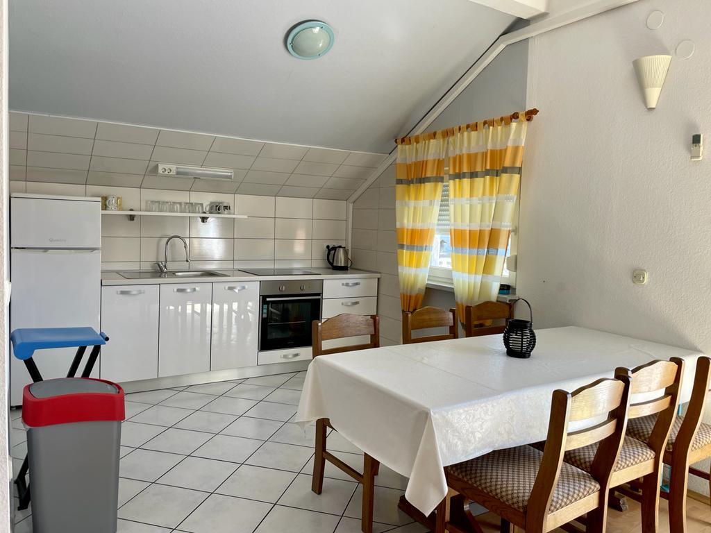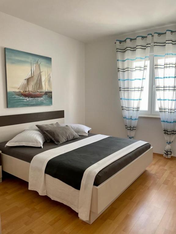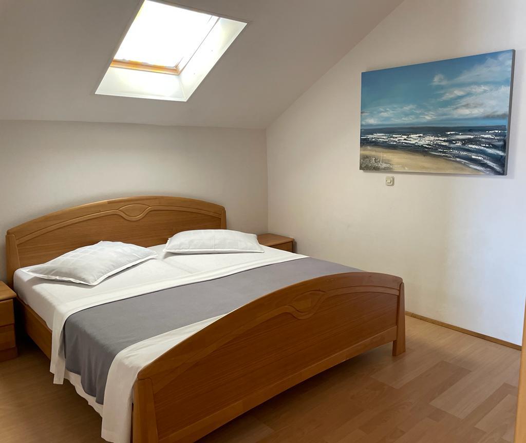 Byt (byt) k pronájmu v prvním patře rodinného domu v klidné části Vodic. Dům se nachází 5 minut chůze od pláže a 10 do centra. Byt o rozloze 130 m2 se skládá z plně zařízených čtyř ložnic, dvou koupelen s WC, vybavené kuchyně, balkonu a terasy.
