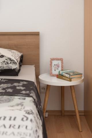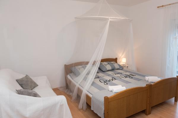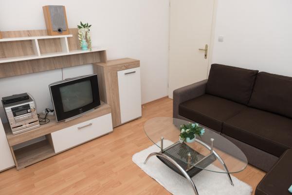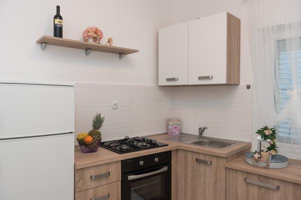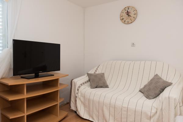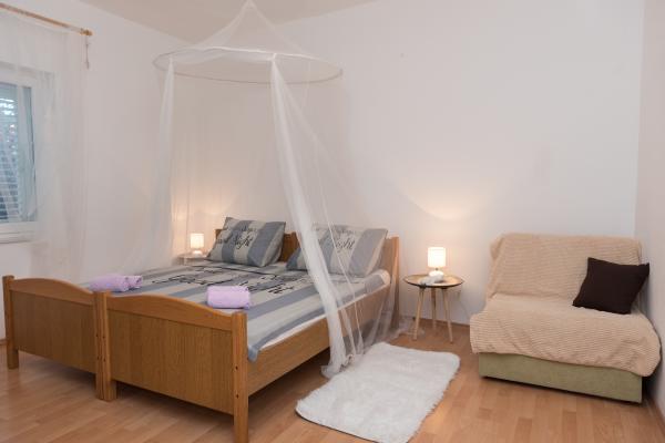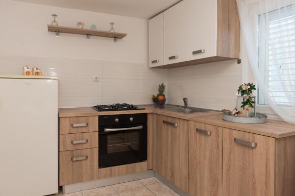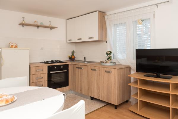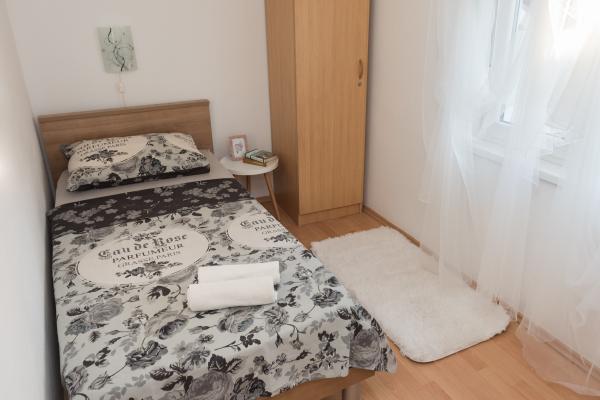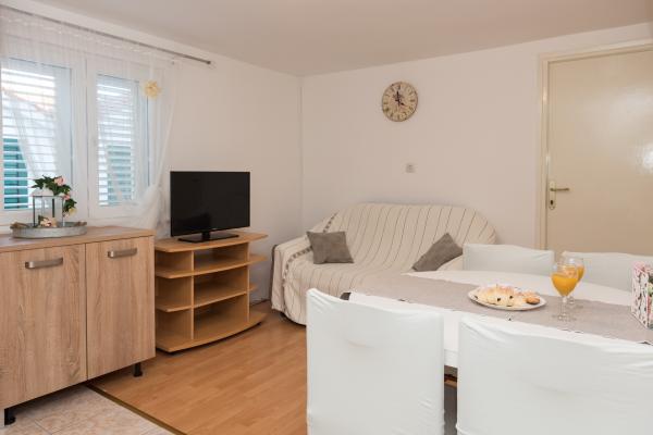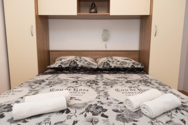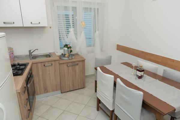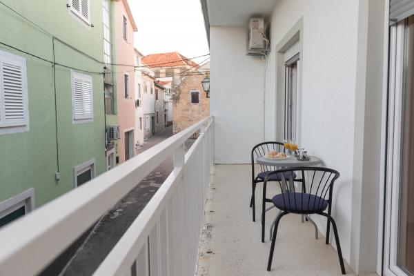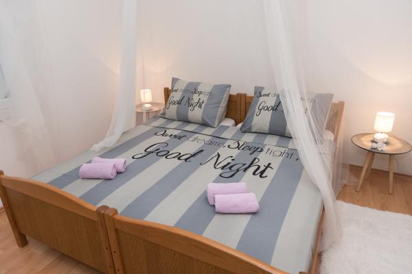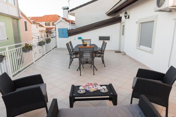Luxusní byt v centru města. Skládá se ze dvou ložnic, jednoho dvoulůžkového a jednoho samostatného pokoje a obývacího pokoje s jídelnou a kuchyní. V koupelně je sprchový kout. V bytě je prostorná terasa s výhledem na moře. Hosté mohou využít gril. Parkování je zajištěno.