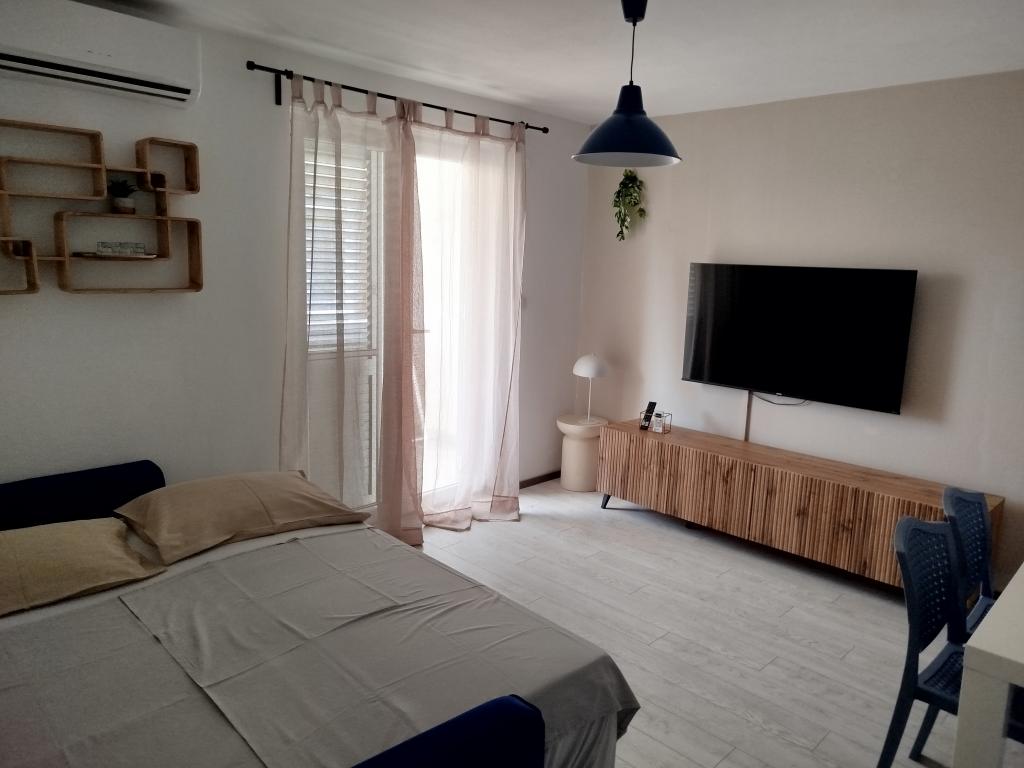 Apartments Blue Beach, který se nachází v klidné části města, na pláži, nábřeží. Do centra a další zařízení se nachází pouhých 5 minut pěšky. Všechny apartmány mají výhled na moře, borovými lesy a krásnou zahradou. Apartmány jsou vkusně zařízené s veškerým potřebným vybavením. Možnost využití, zahrada, gril a dětské hřiště. Parkování ve dvoře.