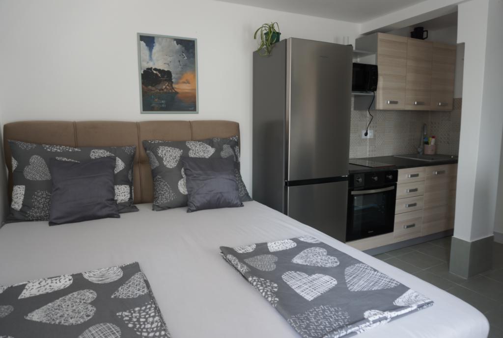Postele jsou pohodlné, apartmán je vybaven vším, co potřebujeme pro bezstarostnou dovolenou, čistý. Majitelé jsou přátelští (viděli jsme je pouze při příjezdu a odjezdu). Doporučujeme!