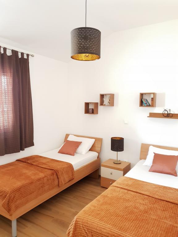 Luxusní apartmány, jeden o velikosti 84 m2 (ID: 24697) a druhý o velikosti 58 m2 (ID: 24698) se nacházejí v prvním patře rodinného domu v klidné části Vodice, obklopené 1700 m2 středomořskou zahradou, pouze 10 min. chůze od centra a nejbližší pláže a 5 min. z obchodu. Apartmány jsou moderně zařízené, klimatizované, mají SAT-TV, internet (Wi-Fi), pračku, myčku. Oba jsou dvoupokojové s tím, že pokoje s manželskou postelí jsou umístěny na galeriích, které jsou navíc klimatizovány. Před domem je kryté parkovací stání a letní kuchyně s grilem. V centru Vodice, v klidné oblasti, na adrese Plimica 96A, pronajmeme rekreační dům se dvorem a parkováním. Dům je vybaven vším potřebným pro příjemnou dovolenou a delší pobyt. Pošlete nám svůj dotaz a my vám nabídneme nejlepší nabídku. vítej :)