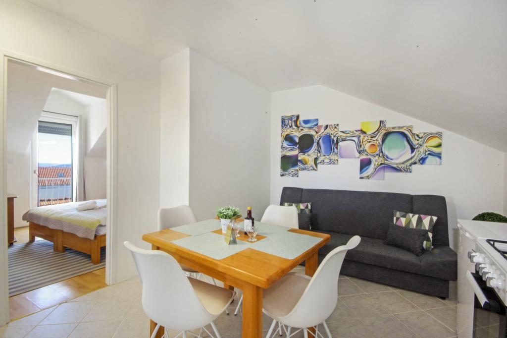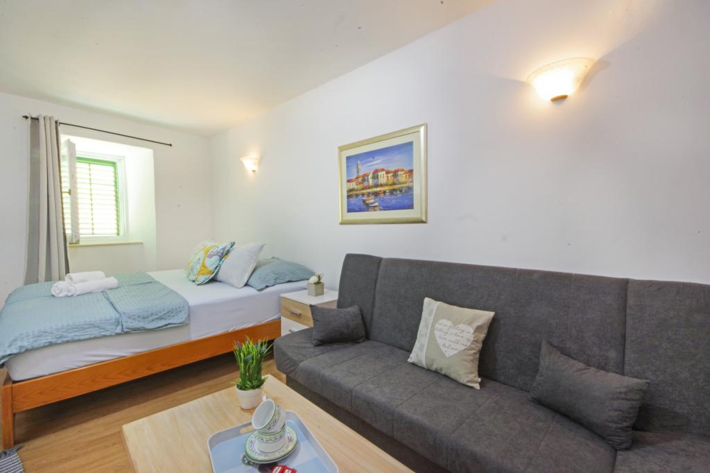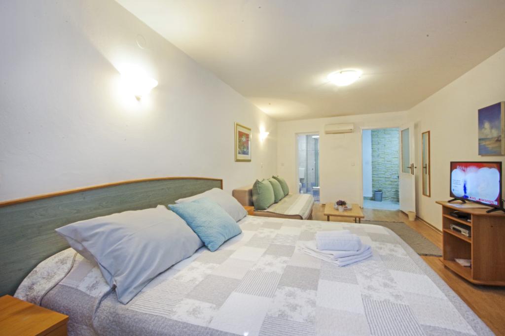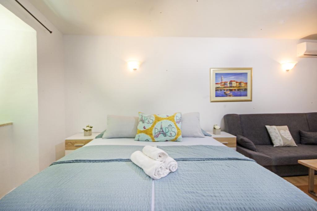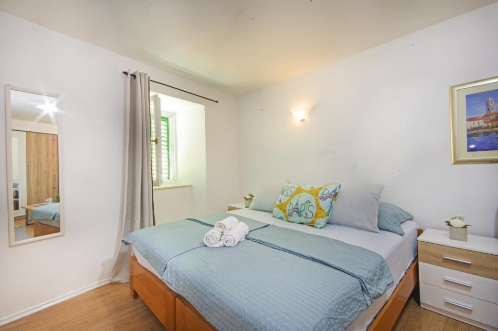 Speciální apartmán ve stylu taverny v centru Vodice se dvěma ložnicemi. Jedna ložnice s manželskou postelí a jedna ložnice s manželskou postelí a samostatným lůžkem. Vedle bytu máte vlastní parkoviště.