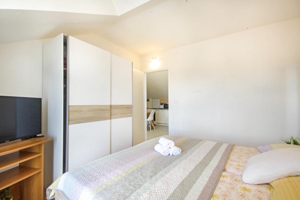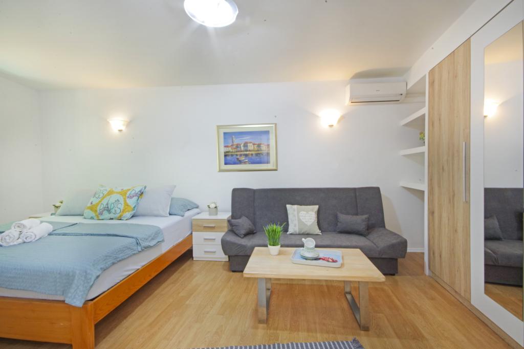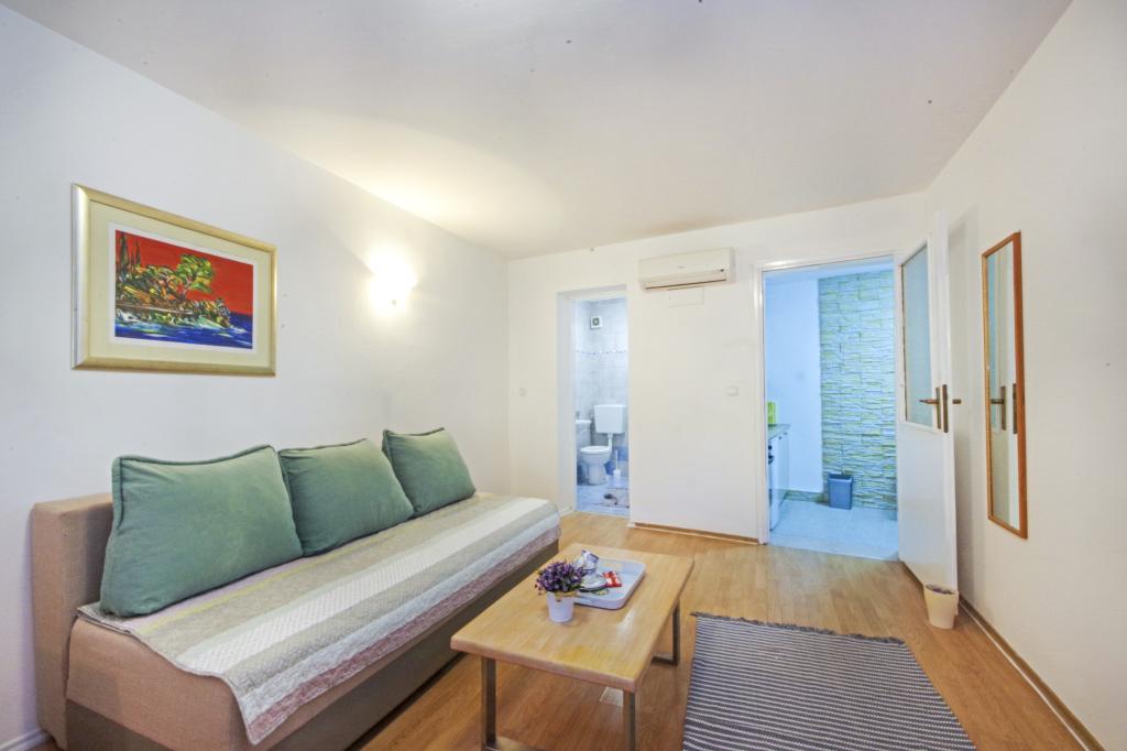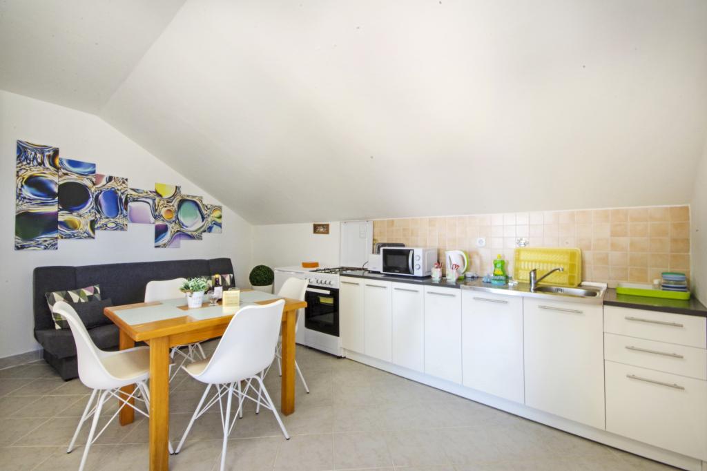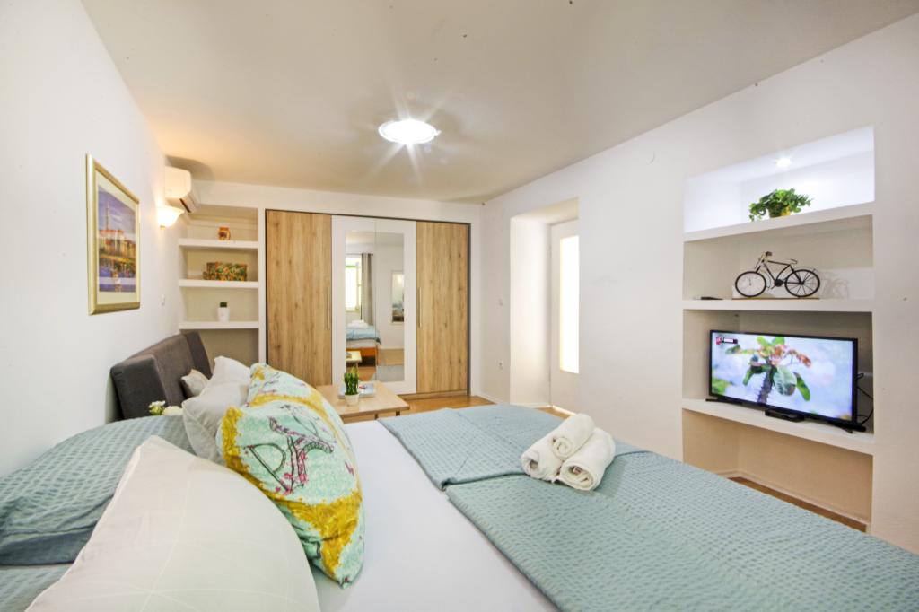 Speciální apartmán ve stylu taverny v centru Vodice se dvěma ložnicemi. Jedna ložnice s manželskou postelí a jedna ložnice s manželskou postelí a samostatným lůžkem. Vedle bytu máte vlastní parkoviště.