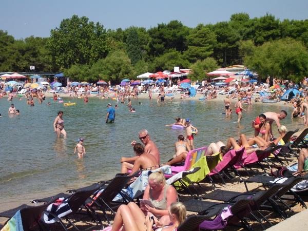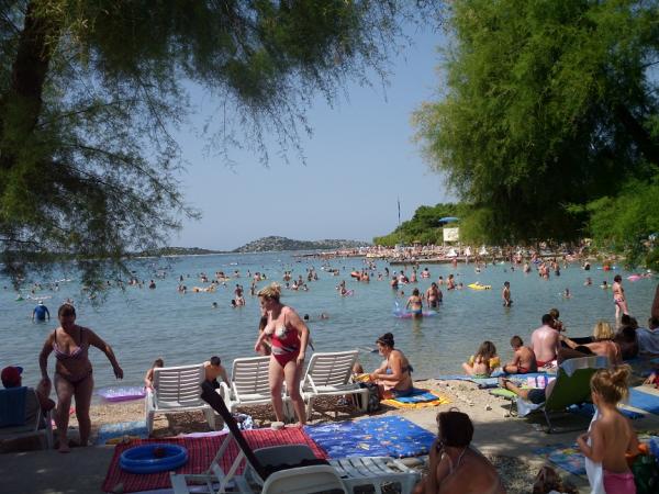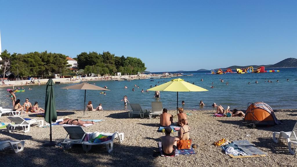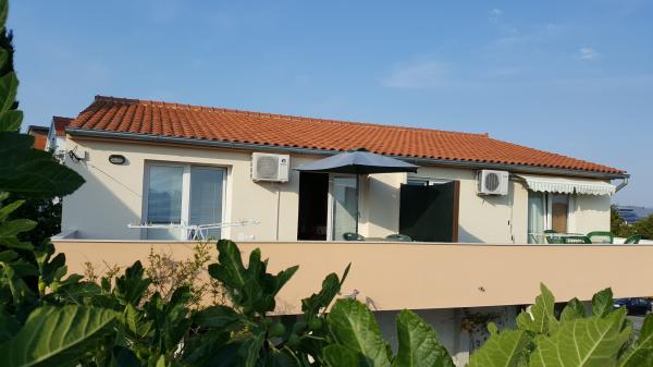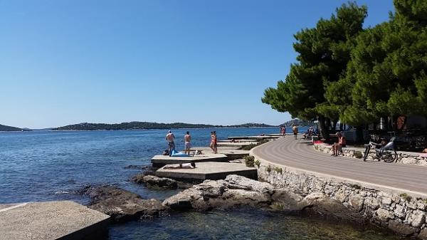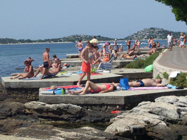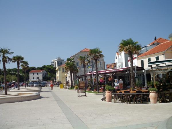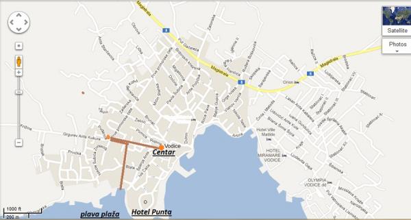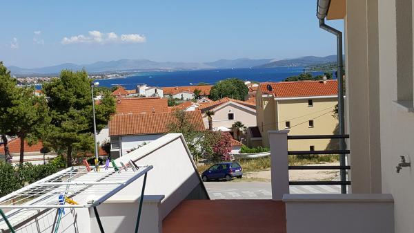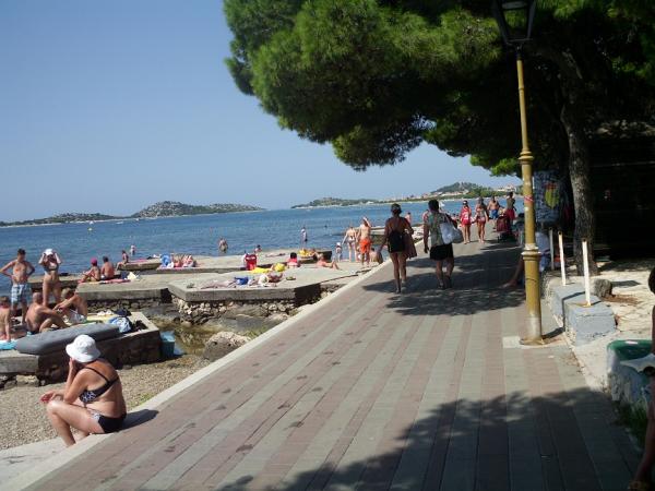 Plně vybavené apartmány s terasou, výhledem na moře a samostatným vchodem. . Skládají se z; obývací pokoj s rozkládací pohovkou (140/200 cm), kuchyň, ložnice (postel 160-200), koupelna a chodba. Klimatizace, pračka (v oddělené části), elektrický gril, satelitní TV a Wi-Fi internet. Parkování zajištěno, obchod s potravinami v přízemí. Zahrada před domem. Apartmány se nacházejí 300 m od centra a 400 m od pláže. Oblázková modrá pláž nedaleko hotelu Punta, která získala modrou vlajku. Pláž je dlouhá jeden kilometr a stezky jsou ploché kameny, beton, tráva nebo pokryty mozaikovými dlaždicemi. K dispozici je několik sprch a veřejné WC. Většina pláže je pokryta borovicemi a tamarisy, v přirozeném stínu existuje několik kaváren a barů. Vodice mají bohatou turistickou tradici a různé nabídky a nedaleko jsou 2 národní parky
