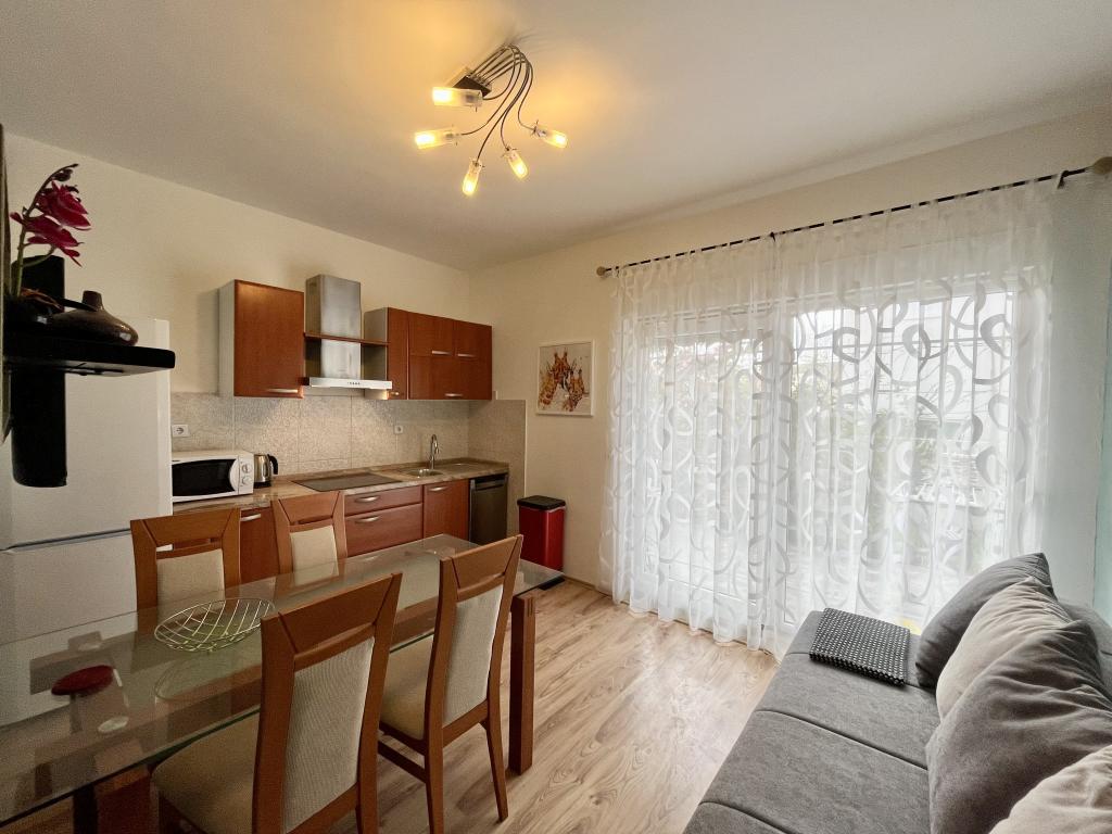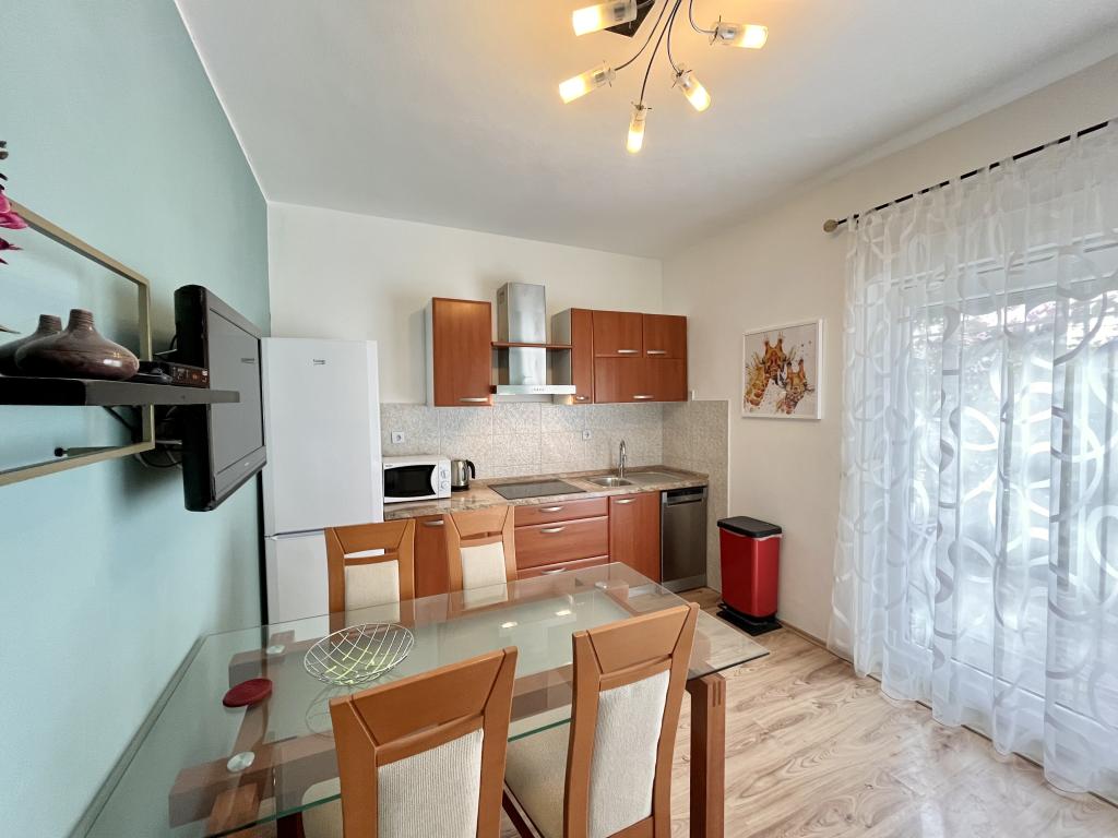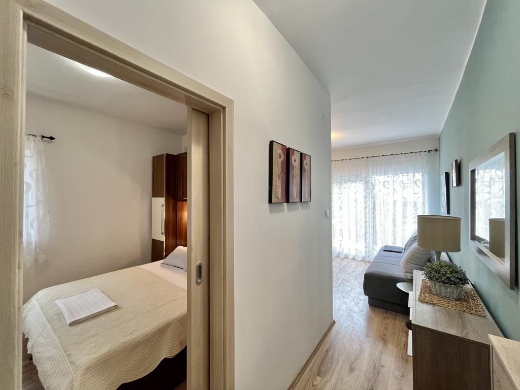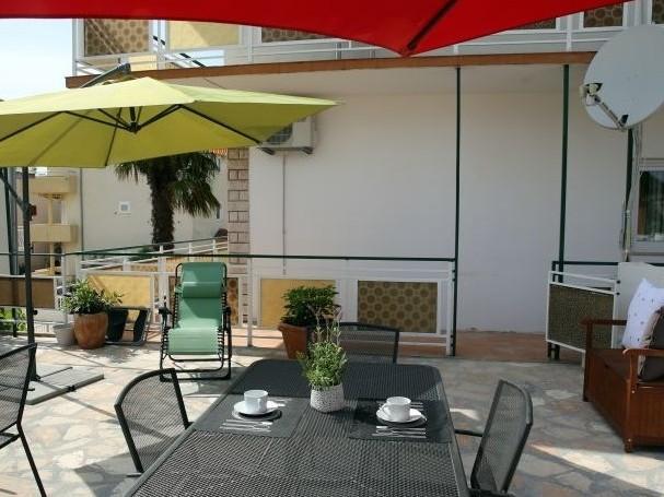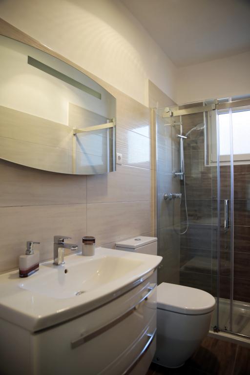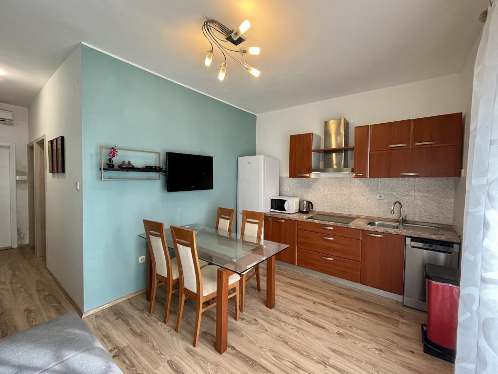 plně a moderně vybavené apartmány v klidné části Vodice, budova je 300 metrů od pláže, 10 minut chůze do centra, každý apartmán má parkování zdarma, WIFI zdarma
