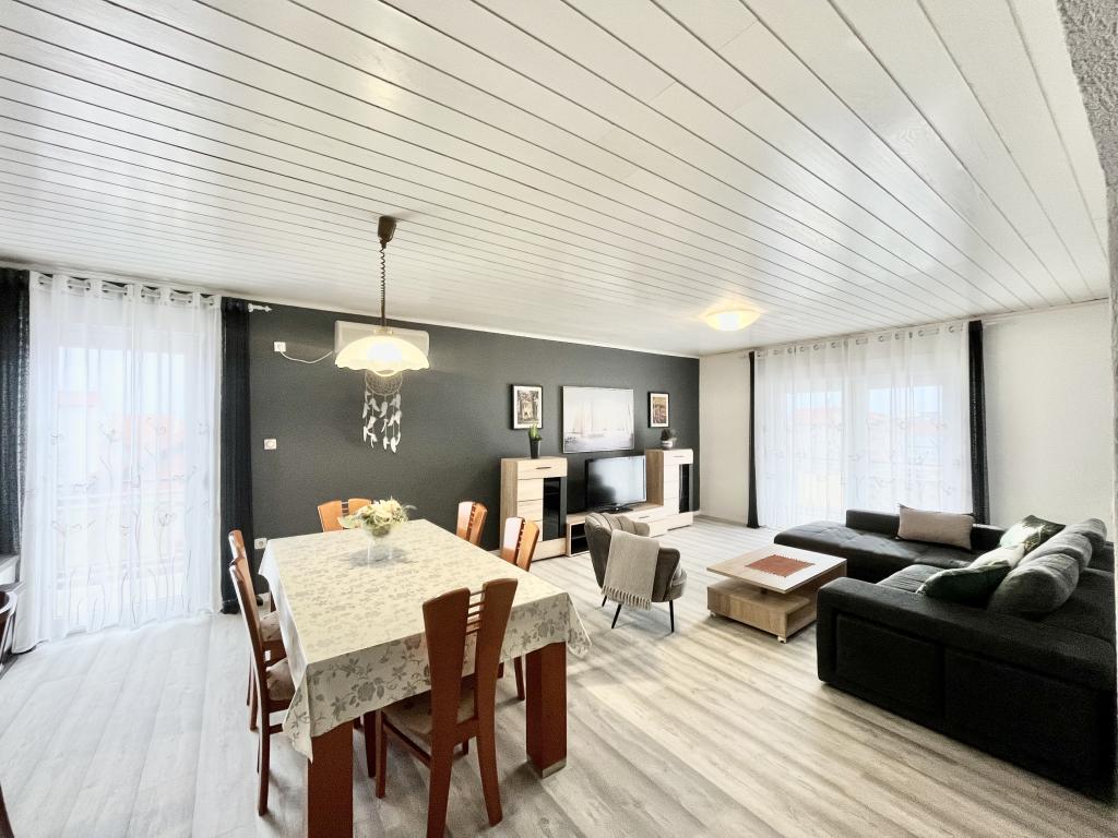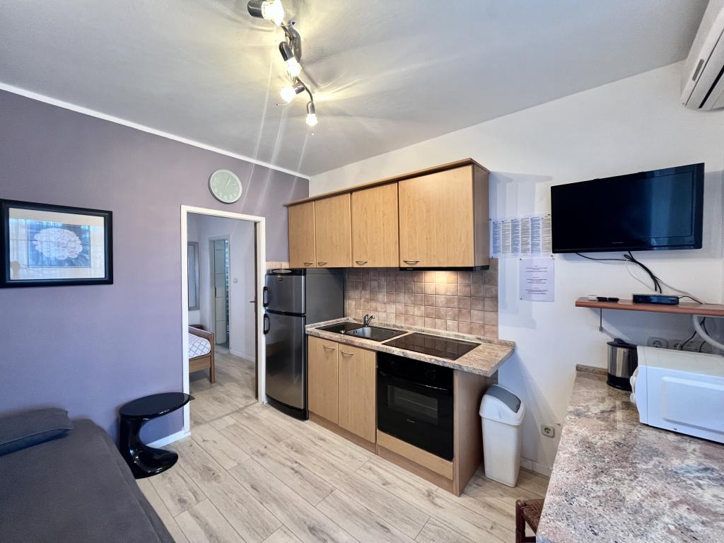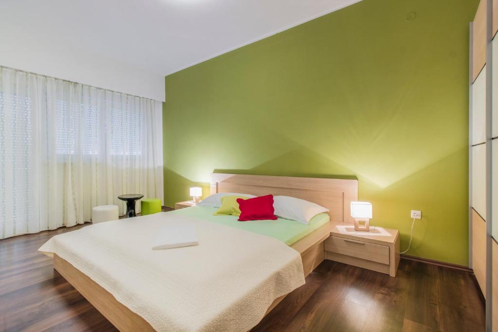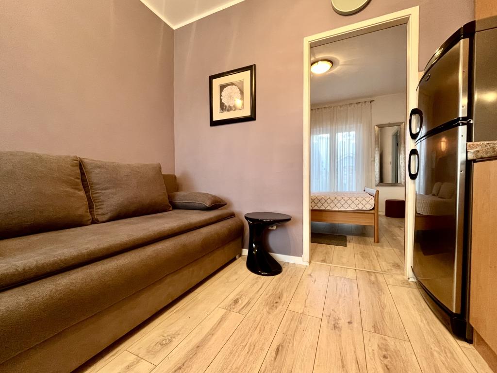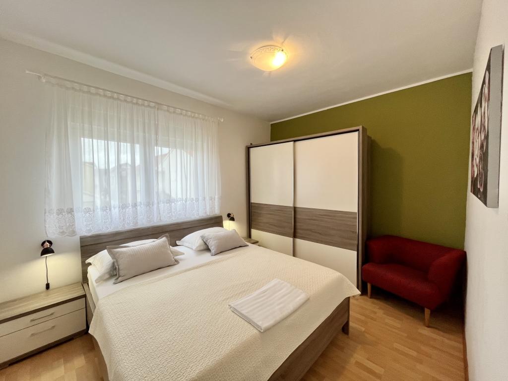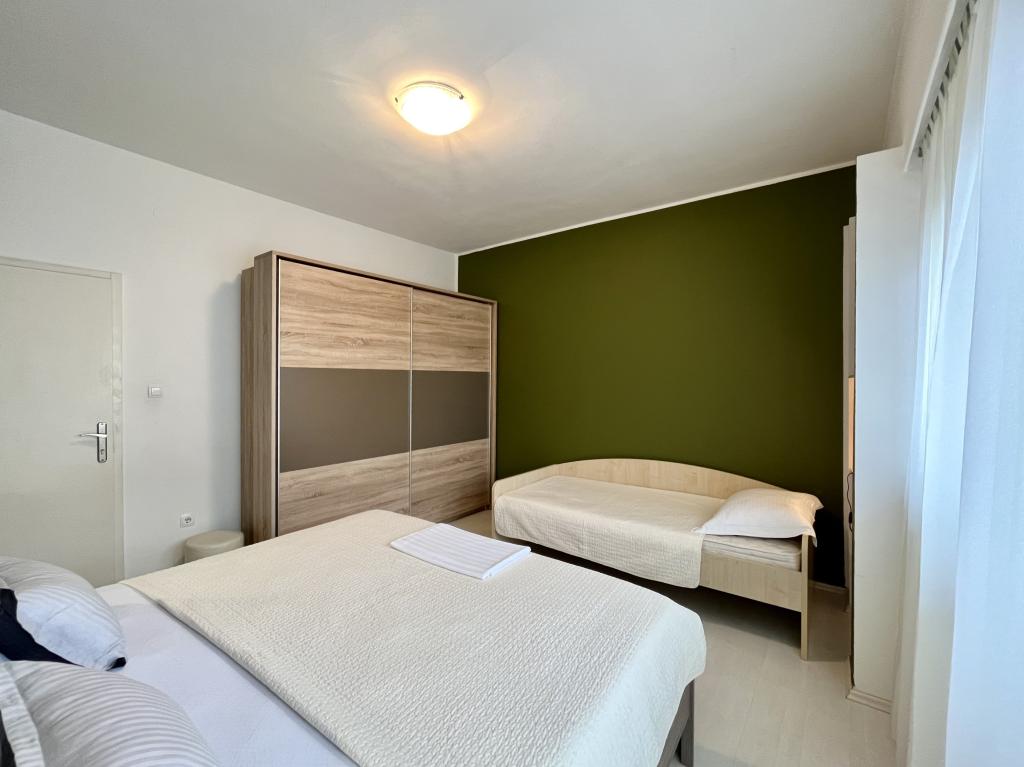 plně a moderně vybavené apartmány v klidné části Vodice, budova je 300 metrů od pláže, 10 minut chůze do centra, každý apartmán má parkování zdarma, WIFI zdarma