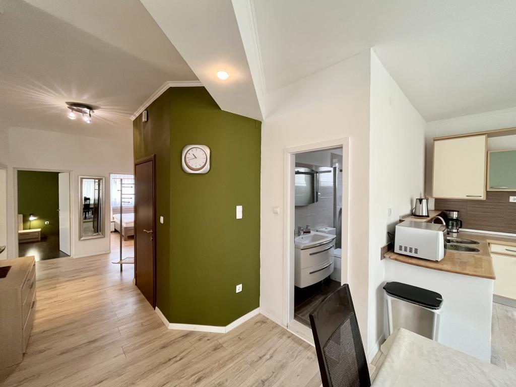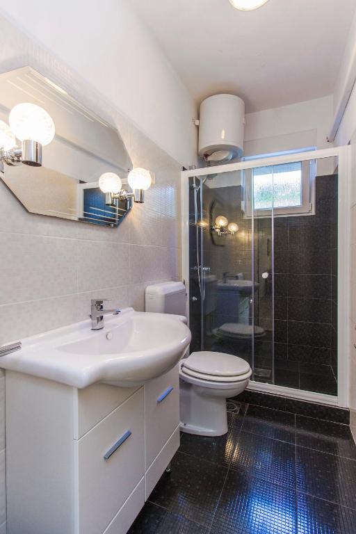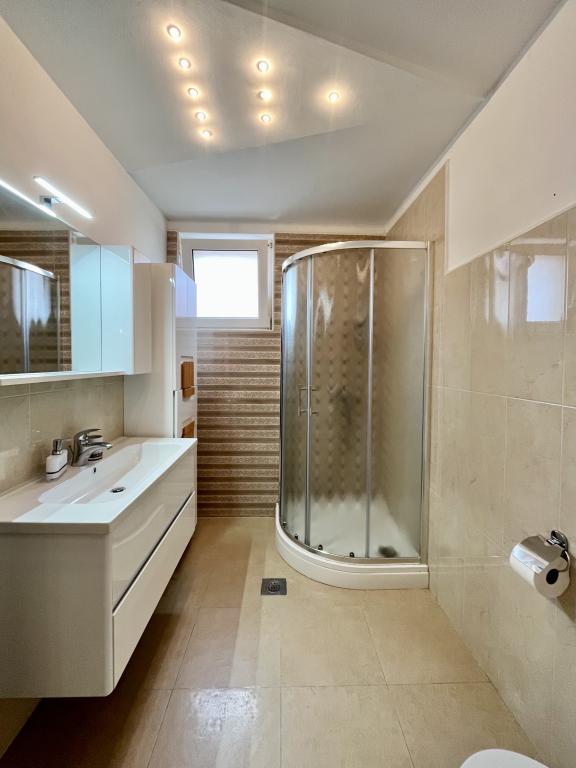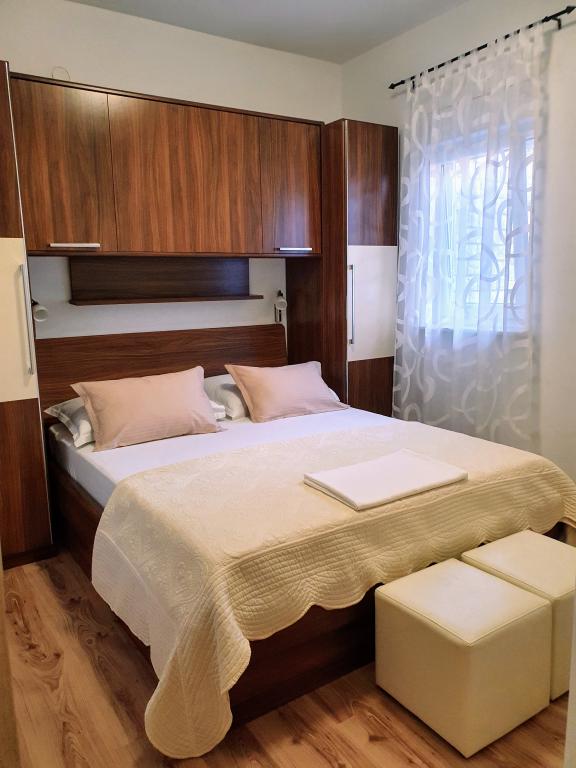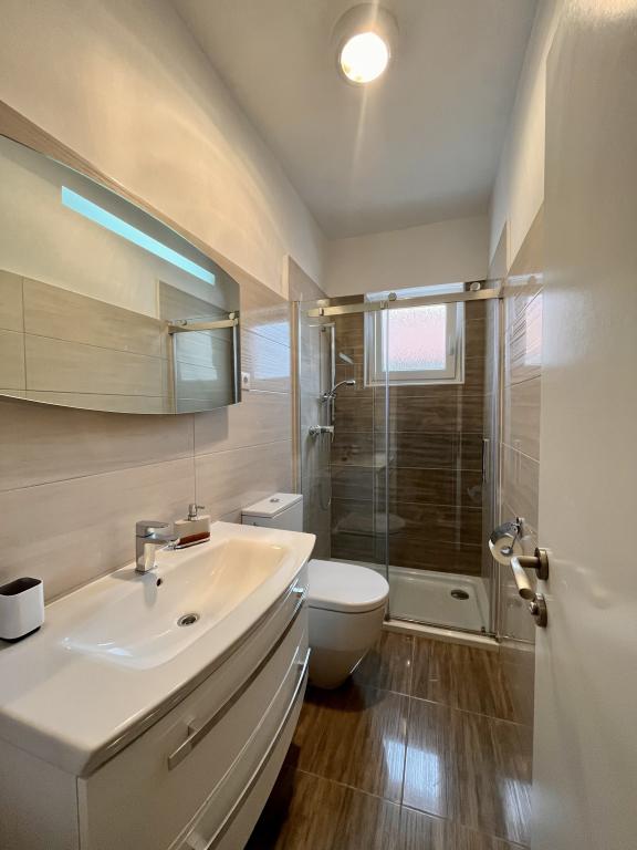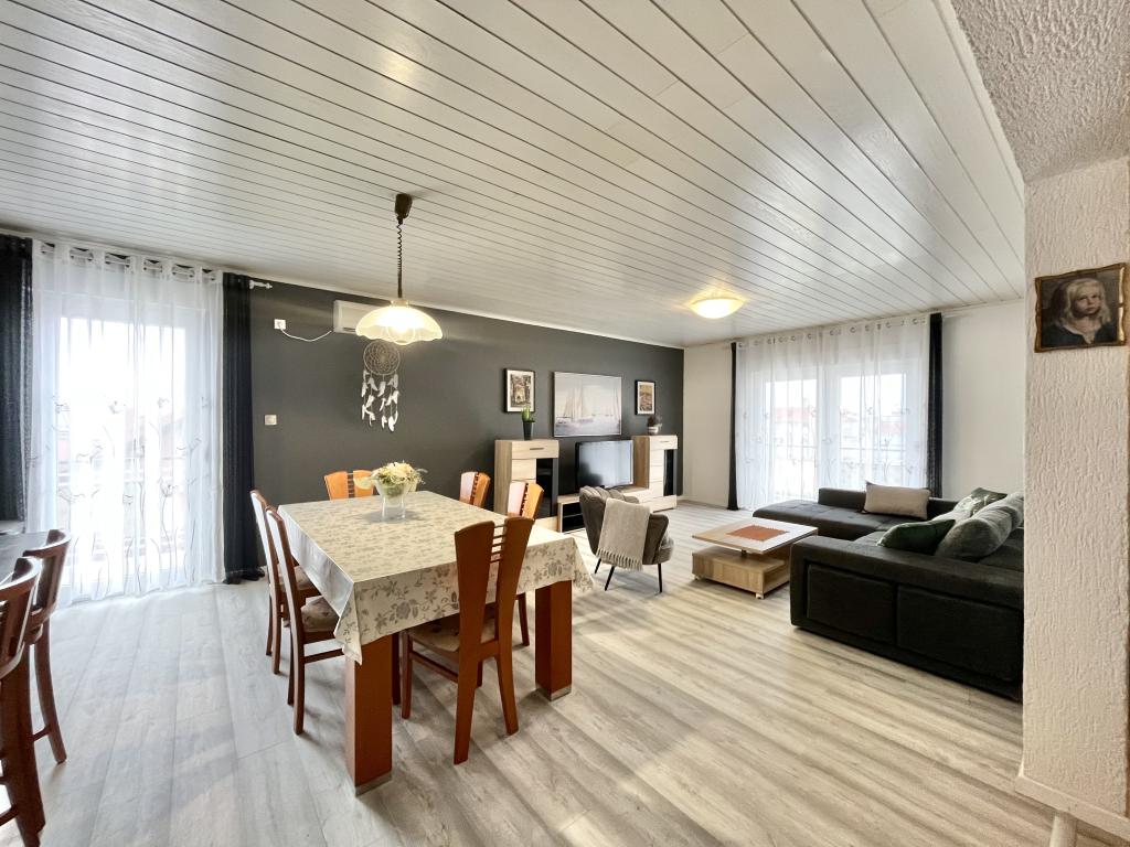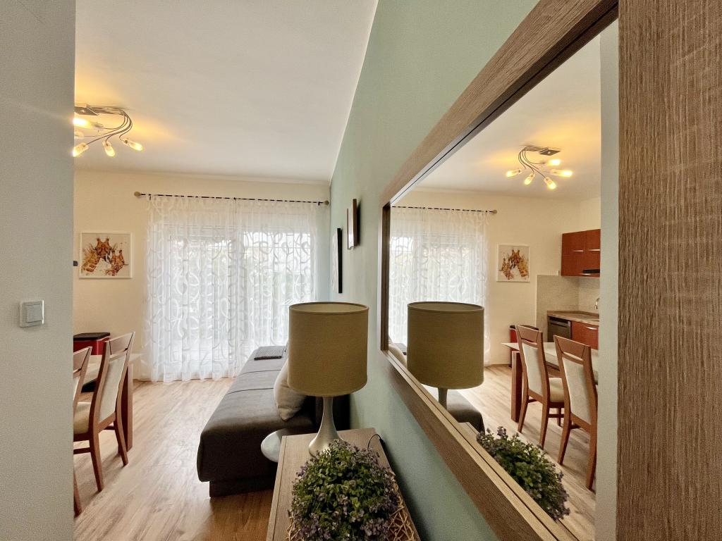 plně a moderně vybavené apartmány v klidné části Vodice, budova je 300 metrů od pláže, 10 minut chůze do centra, každý apartmán má parkování zdarma, WIFI zdarma
