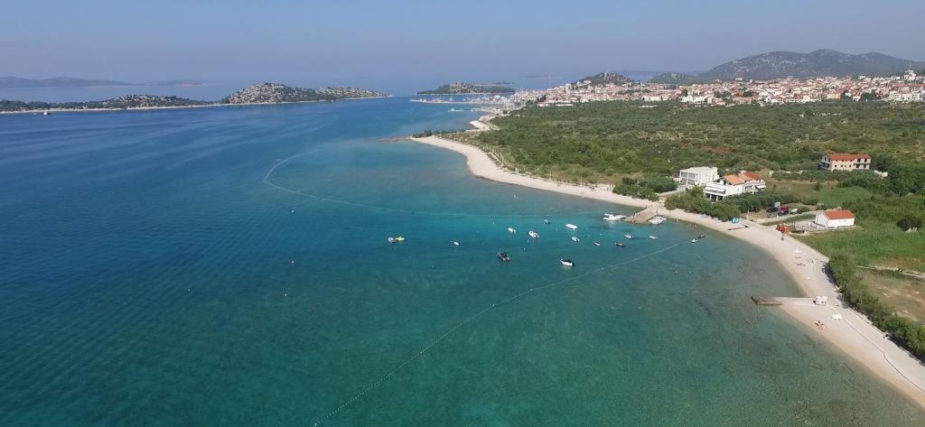 „Villa Lovorka“ nabízí ubytování v první řadě u moře s krásným, otevřeným výhledem na ostrovy, pláž a okolí. Na okraji města Vodice, v klidné oblasti, pro relaxační dovolenou. Naše apartmány mají označení „Like HOME“, což je ubytování pro rodiny s dětmi klubové kvality. Naše pohodlné apartmány mají 1 nebo 2 ložnice, každá se standardně vybavenou kuchyní, obývacím pokojem s jídelním koutem, halou, sprchou/WC a velkými balkony, většina s výhledem na moře. Vyzdvihujeme velké oplocené parkoviště pro auta a lodní přívěsy. Pokud chcete rekreaci, zábavu nebo gurmánské požitky, v blízkosti se nachází slavná Modrá pláž, pláž Vićević, před domem pláž Bristak, a také nová promenáda spojující Vodice a Tribunj. Celoročně bydlíme v přízemí a rádi jsme našim hostům k dispozici. Základní vybavení: - první řada u moře - prostorné balkony s krásným výhledem na moře - ústřední topení a klimatizace pro pohodlný pobyt - SAT TV, Wi-Fi - vytváříme další obsah dle zájmu hosta