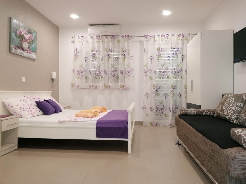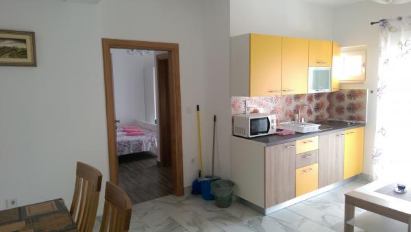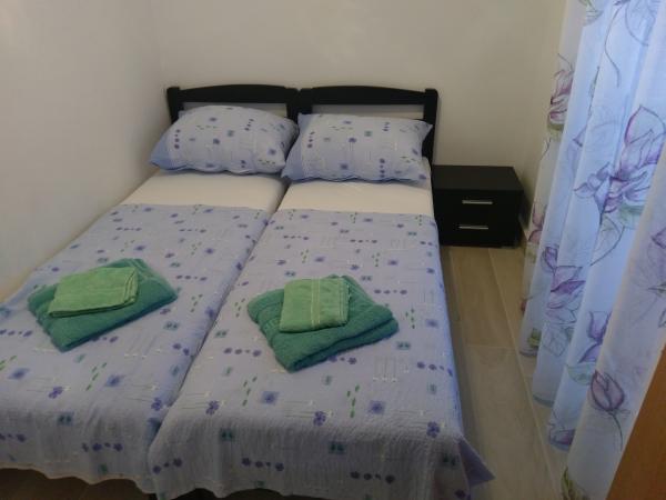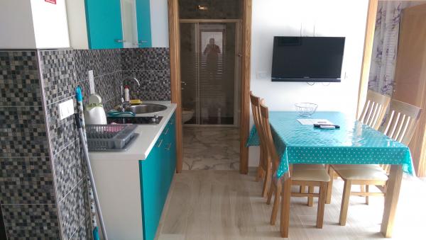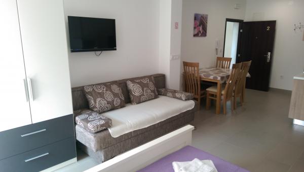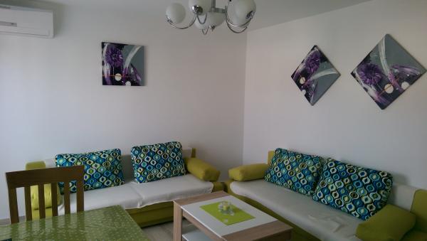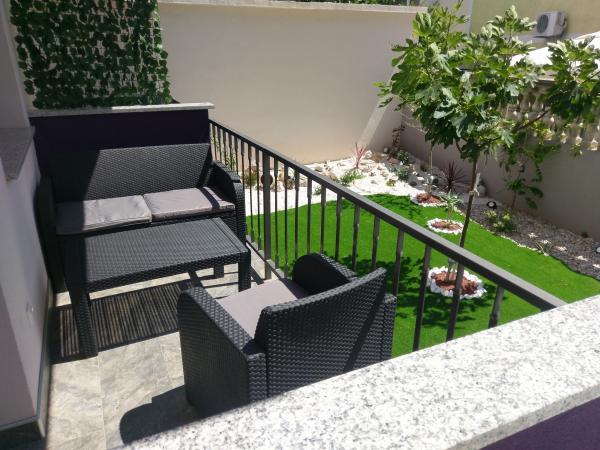 Plně vybavené a moderní apartmány 4 v klidné části města, která se nachází v blízkosti pláže. V domě se nachází 2 minuty chůze od pláže. V každém apartmánu osobní trezor. V uzavřeném dvoře je parkoviště pro všechny vozy. Pokud máte rádi ryby, maso, zeleninu z grilu na zahradě může být volně používat