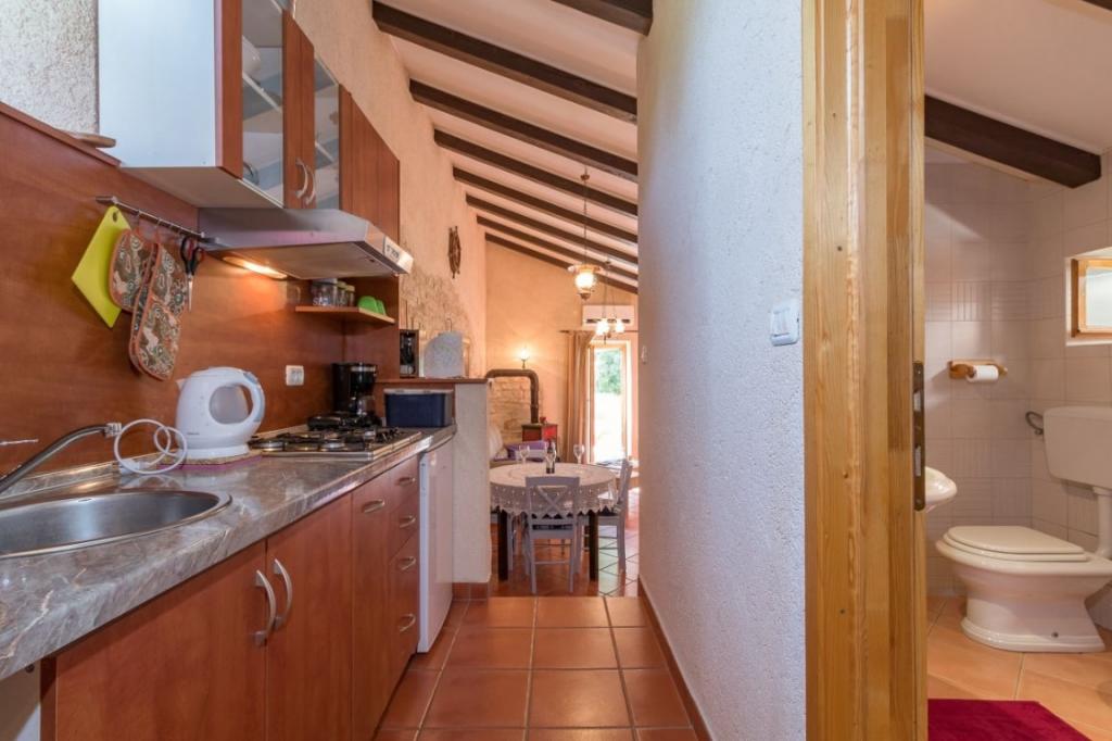 Plně využitý penzion se nachází ve Vodnjanu, asi 5 km od Fažany a 10 km od Puly. Dům je kompletně zařízený a zařízený - skládá se z obývacího pokoje s možností přistýlky pro dvě osoby, ložnic s manželskou postelí, koupelny, kuchyně a příjemné zahrady se židlemi, stolem, teplovodní sprchou, lehátky, grilem a parkovací místo pro jedno vozidlo. Parkoviště a zahrada jsou plně využívány pro hosty. V blízkosti se nachází obchod s potravinami, bankomat, pizzerie a restaurace, tenisový kurt a pekaři a kavárny. Nachází se v blízkosti centra, ale je stále dostatečně oddělený, aby hostům poskytoval dostatek soukromí. Domácí zvířata jsou vítána!