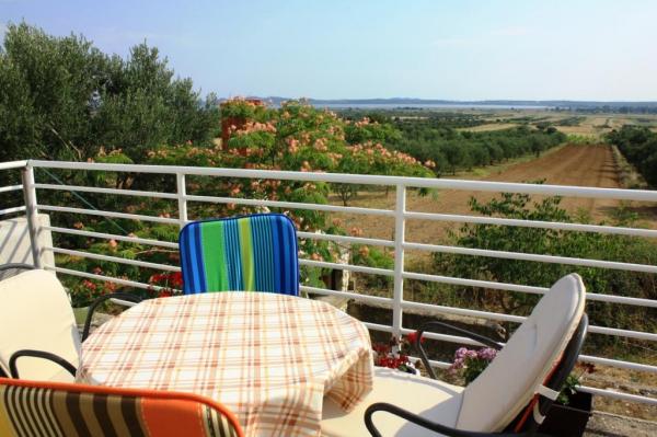Dovolená v oáze klidu, který se nachází na okraji Přírodní park Vranské jezero, zaručuje vám příjemnou dovolenou v nastavení země mimo město a davů turistů. Dům se nachází na kopci s úchvatným výhledem na jezero Vrana. Ve stínu olivovníků můžete strávit příjemné chvíle odpočinku. Krásné pláže Biograd Riviera se nachází jen 10 km. Vranské jezero je známý pro jeho rekreační a sportovní rybolov a oblast oplývá mnoha horkých historických památek. Dovolená se skládá z velkého obývacího pokoje, jídelna (TV, klimatizace, podlézat postel) a plně vybavenou kuchyň. Obývací pokoj má velkou terasu s výhledem na jezero Vrana, pole a olivové háje. K dispozici jsou 3 ložnice, z toho 2 ložnice s manželskou postelí a jeden pokoj má dvě samostatné postele. Na východní straně domu je další velká terasa s výhledem do zahrady. Dům má venkovní krb s grilem a grilem. Parkování na pozemku (4-5 auta).