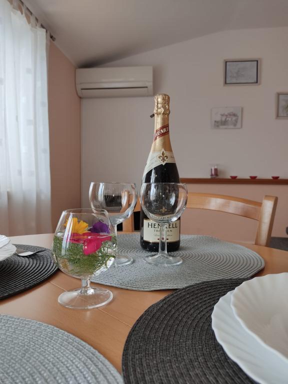 Apartmán Danica má 1 ložnici, 1 koupelnu s WC, kuchyň s jídelním koutem, obývací pokoj. Klimatizace, Wi-Fi, satelitní anténa. Apartmán Danica se nachází v malém a klidném místě Risika. Byt má výhled na moře. Parkování zdarma. Pokud chcete klidnou a odpočinkovou dovolenou, pak je to ten pravý apartmán pro vás!