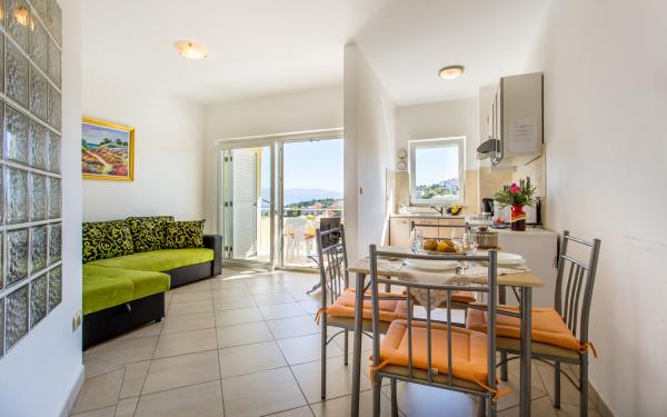 Naše apartmány se nacházejí v klidné části města, odkud rozšiřuje krásný výhled na staré město a moře. Jsme obklopeni nedotčenou přírodou, moře a do moře mezi námi jen 200 metrů. Apartmány se nacházejí 10 minut chůze do centra a na pláž.