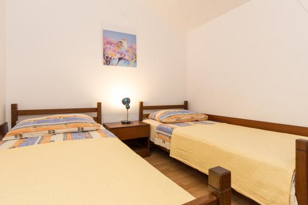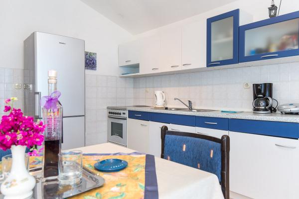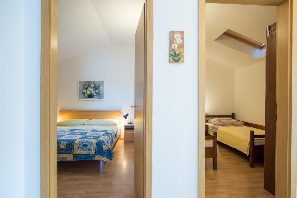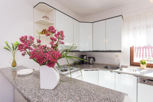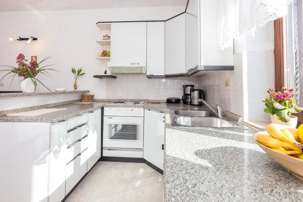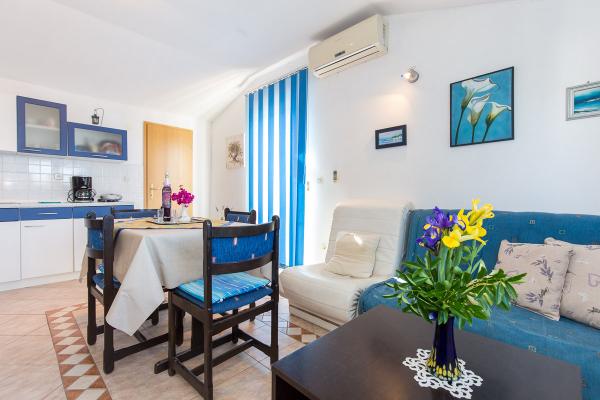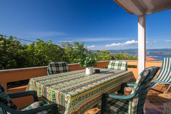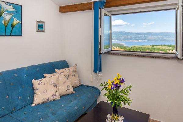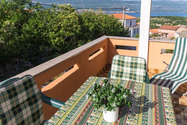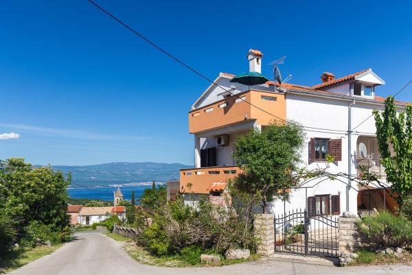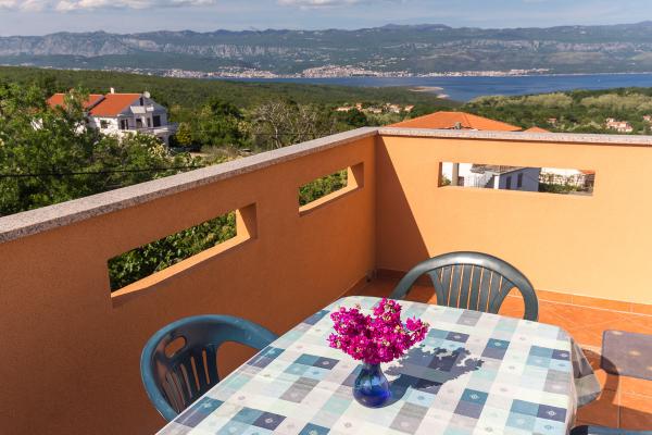 Komfortně zařízené apartmány s krásným výhledem na moře, v klidném místě vedle Risika Vrbnik na ostrově. Blízkost (100 m) a 5 minut jízdy od písečné pláže.