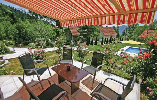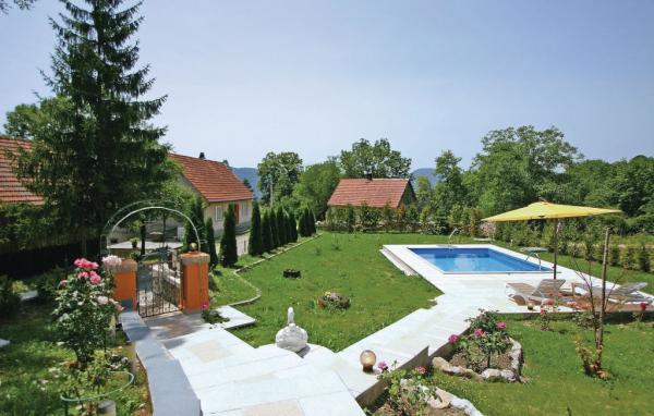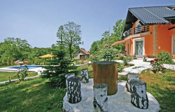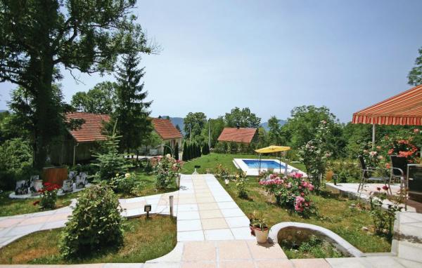 Krásný a moderní dům s bazénem v klidné lokalitě, obklopen lesy a loukami, ideální pro relaxaci a socializaci. V přízemí je samostatná kuchyň s jídelním koutem a obývací pokoj, ze kterého je vnitřní schodiště vede do prvního patra, kde jsou dvě ložnice. V malé nízké podkroví v horní části domu jsou postele, ideální pro děti. Kuchyň je vybavena všemi moderními spotřebiči. Pozemek je oplocen a prostorný vhodný pro udržení domácí mazlíčky. Odtud se můžete projít jít do nedalekého louce vybrat květiny a plody.