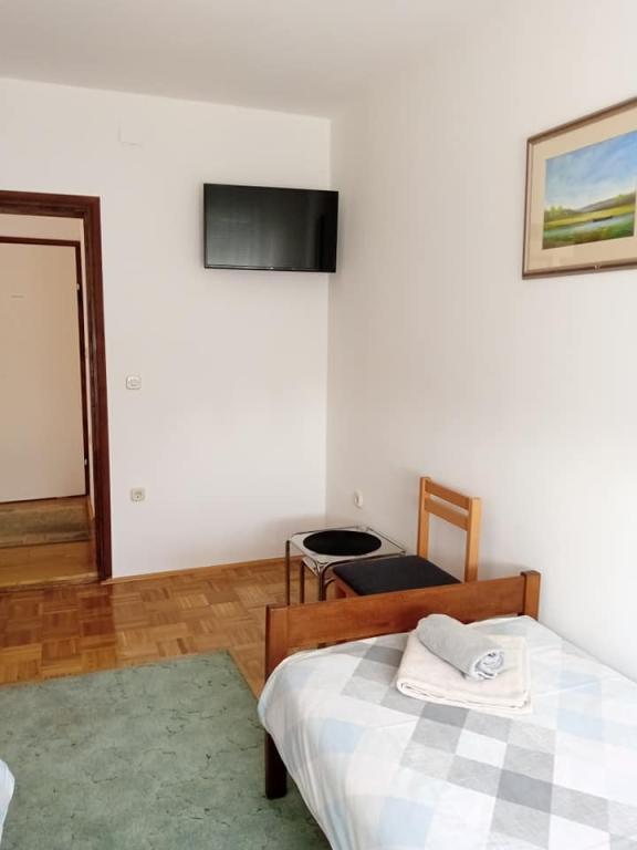 Apartmán "Kod dide i baka" se nachází v klidné části Mitnica, v prvním patře rodinného domu. Skládá se ze tří pokojů, kuchyně a koupelny. Třílůžkový pokoj (manželská postel a samostatné lůžko) má balkon s výhledem na trávník a do ulice. Dvoulůžkový pokoj má dvě oddělené postele. Pokoj se třemi samostatnými lůžky (dvě lze spojit do dvoulůžka) má vedle baldachýnu třešně velkou terasu na ranní kávu. Pokud přijedete s dětmi, máme i dětskou postýlku pro naše nejmenší hosty. Auto můžete zaparkovat v garáži ve dvoře. Našim hostům nabízíme grilování v altánku s velkým jídelním stolem. Za grilem je malá zahrádka, kde si můžete natrhat vlastní sezónní salát vypěstovaný tradičním způsobem. Jsme vám k dispozici pro všechny vaše dotazy. Těšíme se na váš příjezd a srdečně vás vítáme! dědeček Ivica a babička Mirjana