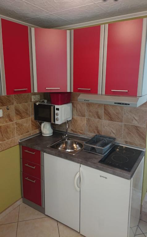 Nově zrekonstruovaný byt v klidné obci Zablače u Šibeniku. Objekt se nachází 300 metrů od moře a centra. V centru jsou restaurace, kavárny a obchody. Pekárna je vzdálena 1 minutu chůze. Autobusové nádraží Peko cesta apartmánu, místní autobus běží každou hodinu v centru Šibeniku. V okruhu 20 km najdete řadu zajímavostí, jako jsou NP Krka, Staroměstské náměstí, Pevnost, Promenády, Cyklistické stezky a turistické středisko Solaris. Byt (1) se skládá z obývacího pokoje s kuchyní a jídelnou, koupelny a ložnice. V obývacím pokoji je možnost přistýlky pro dvě osoby (160x200). Venku se nachází nádherně upravené nádvoří pod přírodním stínem vinné révy a možnost grilování. Byt (2) obsahuje vše a apartmán (1).