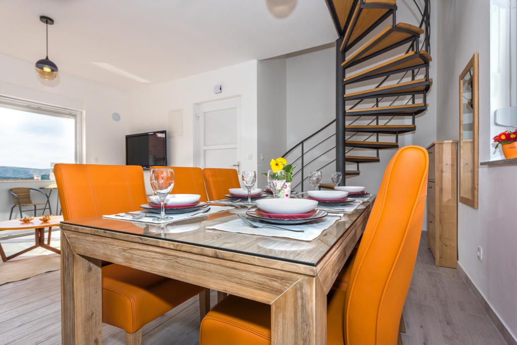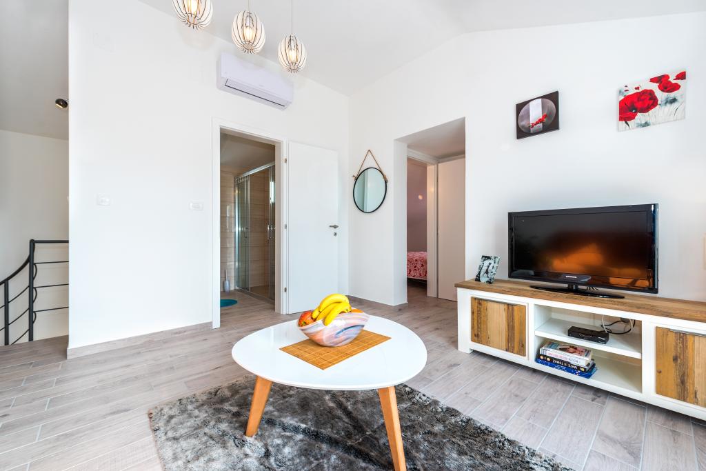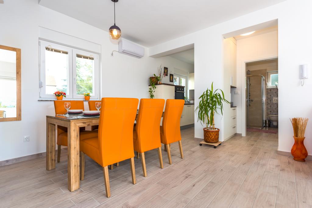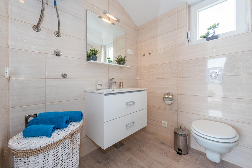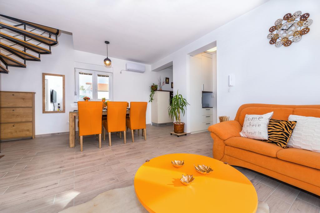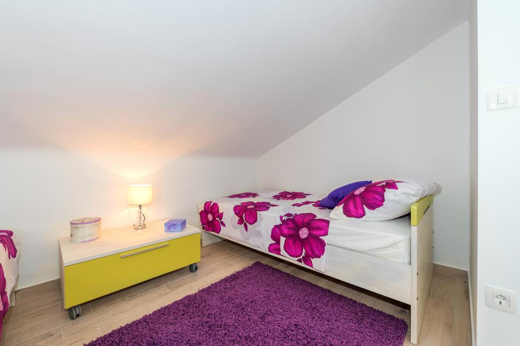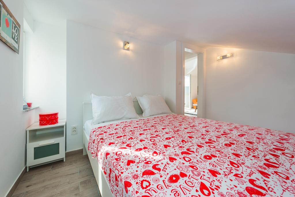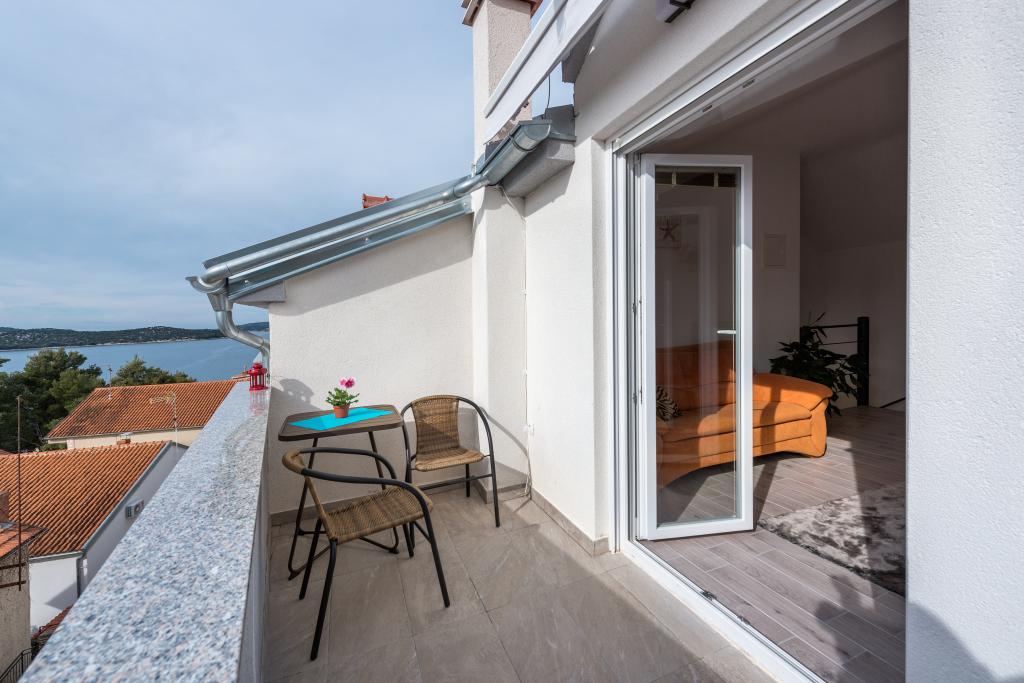 Apartmán Marita se nachází v klidné části Žaborić zvané Crveni brig, je to asi pár minut od moře. Nachází se v malé budově v prvním patře. V rámci bytu jsou dvě garáže zdarma. Plocha bytu je cca 100 m2, rozložena do dvou pater propojených vnitřním schodištěm.V prvním patře je moderní kuchyň se všemi spotřebiči, koupelna, obývací pokoj, balkon a ložnice s manželskou postelí . V horním patře jsou dva pokoje, jeden se dvěma samostatnými lůžky a druhý s manželskou postelí, koupelna, obývací pokoj a balkon s výhledem na moře. V bytě je myčka a pračka a dvě klimatizace. Na jednu z garáží navazuje vnitřní schodiště a vstup do objektu. V blízkosti jsou dvě restaurace, půjčovny lodí a vodních skútrů, zábavní park na vodě. Národní park Krka je také nedaleko, asi 20 km po dálnici.