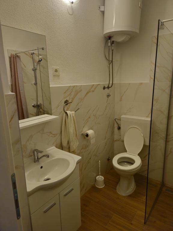 Apartmán s velkou terasou. Příjemné prostředí v klidném prostředí. Blízkost centra a pláže je 5 minut chůze.