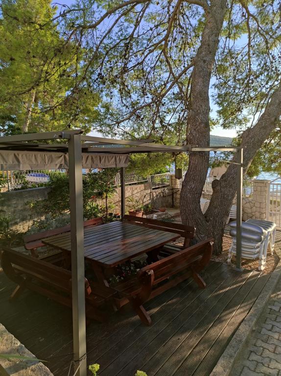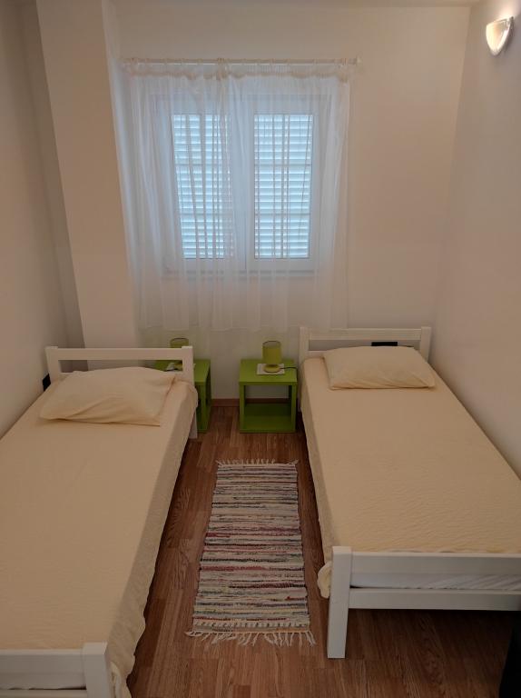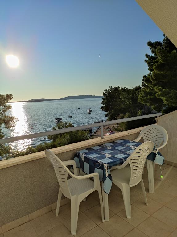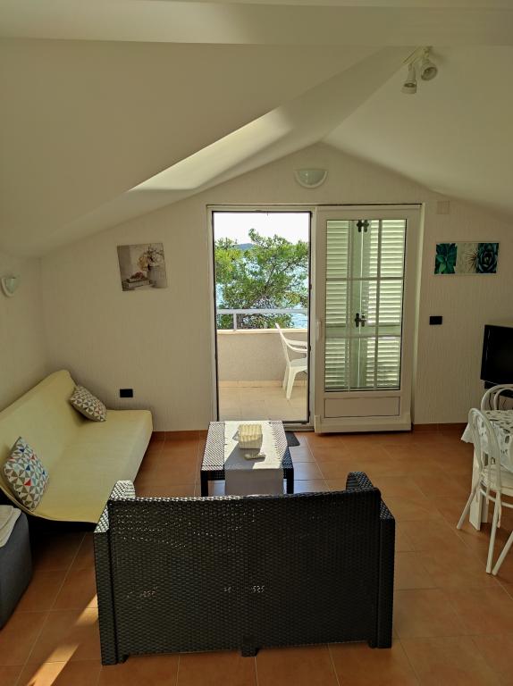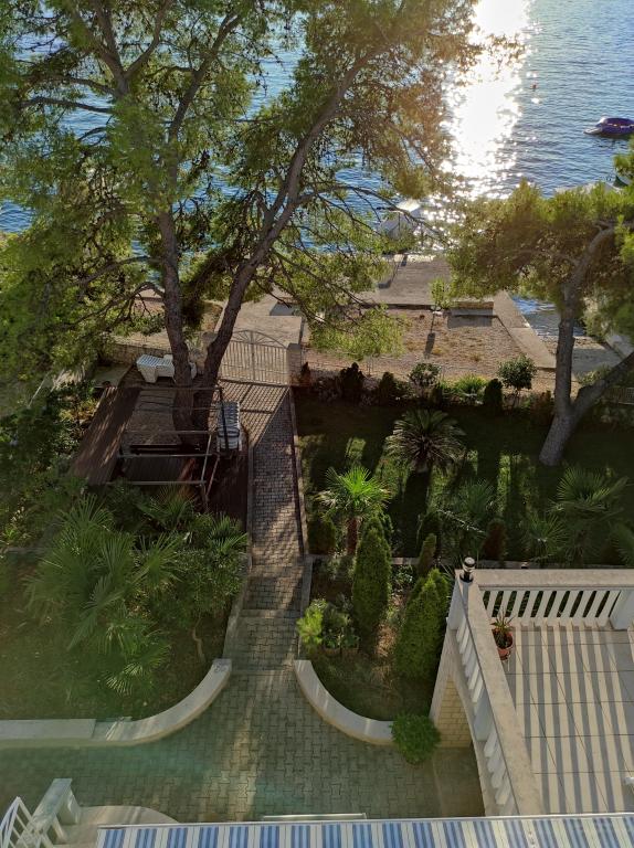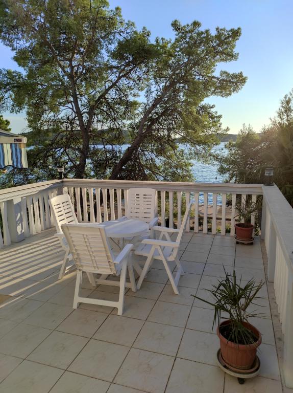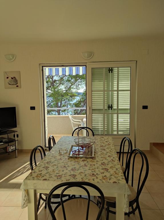 Villa Dradar se nachází v první řadě u moře. Apartmán A10 (A6+A4) Můžeme Vám nabídnout náš vysoce ceněný apartmán A10, který se skládá ze dvou podlaží a má celkovou plochu 200 m2. Prostor se skládá z; V prvním patře je kuchyň, jídelna / obývací pokoj s rozkládací pohovkou, koupelna, tři ložnice se 6 lůžky, šatna a balkon s výhledem na moře před domem. Spojnicí mezi oběma podlažími jsou vnitřní schodiště. Ve druhém patře je kuchyň, jídelna / obývací pokoj s rozkládací pohovkou, koupelna, šatní skříň a dvě ložnice se 4 lůžky, terasa s výhledem na moře. K dispozici je garáž, parkoviště pro další dvě auta, gril, zahrada, zahradní nábytek s markýzou, venkovní sprcha, lehátka a slunečníky, pláž před domem pro dospělé i děti. Máme kotviště pro loď. Vše nově zařízeno a kategorie 4 **** Cena pobytu je 45 € za osobu/noc. Při příjezdu se platí záloha ve výši jednoho dne v případě havarijního pojištění. Částka se vrací při odhlášení.