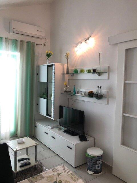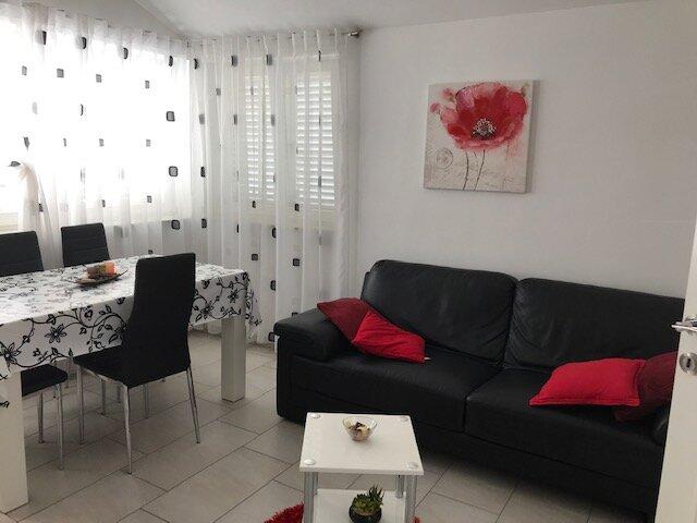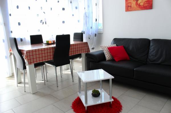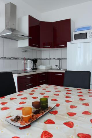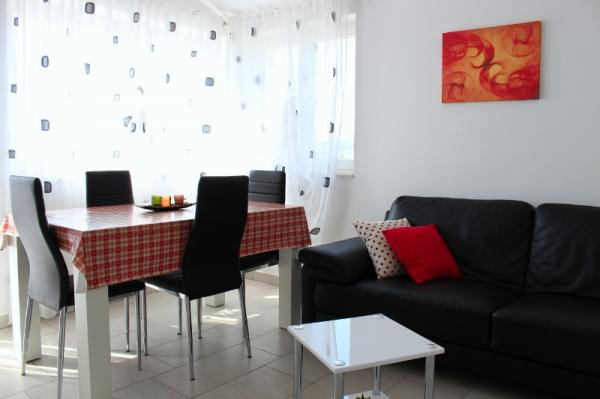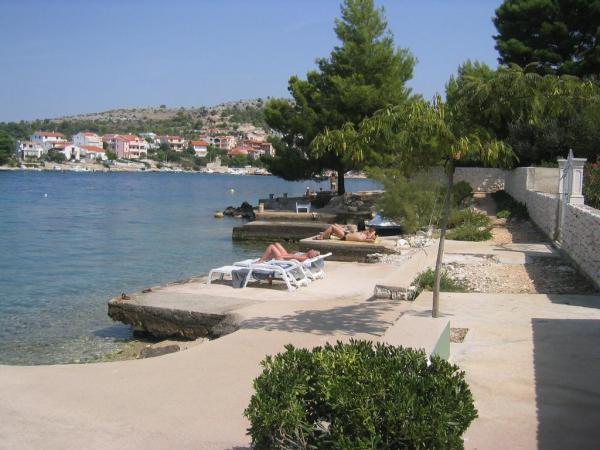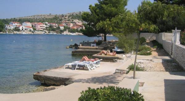 Apartmánový dům se 3 apartmány, v klidné a slunné poloze. K moři a pláži 50 m. 1 km od centra Žaborić, 8 km od Šibeniku, 14 km od Primoštenu. V blízkosti národního parku Krka a Kornat, hotel Solaris Společné: gril, stolní tenis, venkovní sprcha. Oplocené parkoviště na pozemku. 3 4-pokojový byt pro 6 osob, v 1. patře, 80 m2: Obývací pokoj, satelitní / TV / LCD, klimatizace, výstup na balkon (8m2, výhled na moře). Kuchyně (4 sklokeramické varné desky) s jídelním stolem. 1 ložnice s francouzskou postelí (160x200 cm), výstup na stejný balkon. 1 ložnice s francouzskou postelí (140x200cm). 1 pokoj s palandami (2x90cmx200cm). Koupelna / WC. Samostatné WC. 33-pokojové apartmány pro 4 osoby, ve 2. patře, 40 m2 / apt. Zelená a červená: Obývací pokoj / jídelna, satelitní / TV / LCD, klimatizace, výstup na balkón (2m2, pěkný výhled na moře). Otevřená kuchyně (2 sklokeramické varné desky). 1 ložnice s francouzskou postelí (140x200cm). 1 pokoj s palandami (2x90 cmx200cm). Sprcha / W