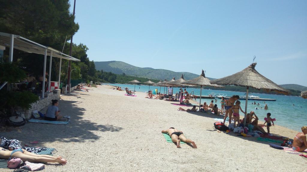 Velmi klidná, neobsazená, pěkná pláž uvnitř zálivu, kam se dostanete elektrickým vozíkem. Poloha přímo u pláže, velmi velký byt v přízemí - velmi těžký elektrický výlet přes terasu - jen jeden krok a práh - měli jsme vlastní příjezdové cesty - takže pro nás to bylo v pořádku; vzhledem k našim velmi neobvyklým potřebám - zdravotně postižený s námi použil obrovskou sprchu v sousedním kempu na cestě z pláže. Byt ve stylu 90. let - možná ne nejnovější módy, ale dobře udržované a velmi čisté, klimatizace a kompletní vybavení. A co je nejdůležitější - JOŠKO - zlatý muž - neuvěřitelně milý a vstřícný, s nímž si můžete pěkně povídat, pít to, co někdo rád hraje kulečník a stolní tenis. JOŠKO - DĚKUJEME !!! S POZDRAVEM !!! BRZY SE UVIDÍME !!!