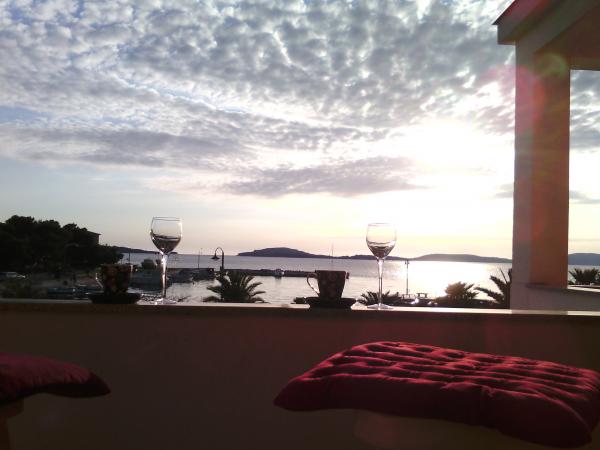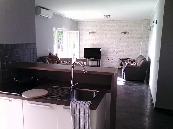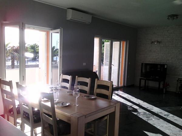 Byt se nachází v centru města, přímo u moře, 20 m od nejpopulárnějších pláží v oblasti. písečná pláž je 200 m košíková a bowling lane jen 100 yardů, zatímco soud pro volejbal vzdálenosti 200 m, 500 m fotbalové hřiště, dětské hřiště 10m vynikající běžecké trasy a stezky pro jízdu na kole je 5 minut. nejbližší pizzerie je 20 m a restaurace 200 yardů. Apartmány jsou moderně a luxusně zařízené. Byt má dvě ložnice, dvě koupelny (jedna je uvnitř místnosti a je sprchový kout, druhý hydromasážní vana). Každý apartmán je vybaven velkou kuchyní s barem, myčkou na nádobí a velkou lednicí s mrazákem. Zařízení má dva balkony s nádherným výhledem na souostroví. tam jsou 3D televizory, satelit, připojení k internetu, klimatizace. Budova má velkou zahradu s šesti parkovacích míst, venkovní sprcha, venkovní stůl a místo k pobytu ve dvoře, kamenným venkovním krbem.