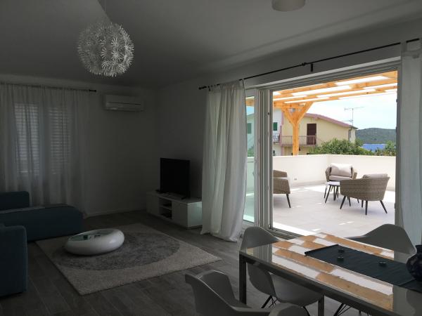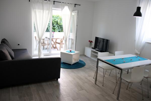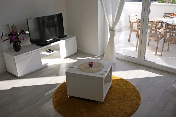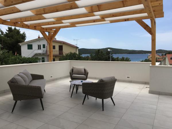 Nové, pohodlné, moderně vybavené apartmány v Žaborić (10 km od Šibeniku) se nachází ve druhé řadě od moře. Objekt se nachází pár minut chůze od oblázkové/betonové pláže. Všechny apartmány mají terasu/balkon, kompletní kuchyni, koupelnu se sprchou. Apartmány jsou vybaveny televizí se satelitním příjmem a bezdrátovým připojením k internetu. Součástí objektu je venkovní bazén, který můžete využívat denně od 10 do 22 hodin. Objekt disponuje dostatečným počtem parkovacích míst pro všechny uživatele bytů.