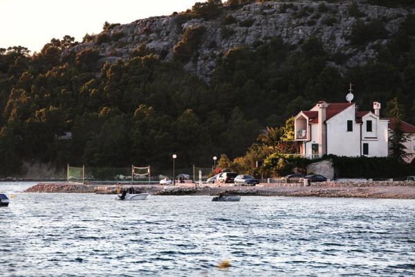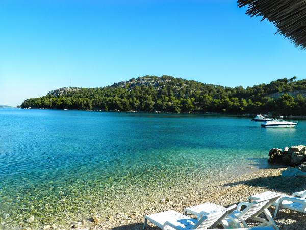 Prostorné a moderní apartmány se nachází pouhých 30 metrů od pláže s výhledem na moře, bezplatné Wi-Fi a parkování. Každý apartmán má vlastní kuchyň a koupelnu. V areálu se nachází pouhých 5 minut chůze do centra města, restaurace a kavárny. Nejbližší obchod s potravinami je 15 minut. Návštěvníci si mohou vybrat z kamene, štěrku, písku a betonu pláže. K dispozici je zdarma rampa pro spouštění a vyjímání lodí od moře. Tam jsou také hřiště na volejbal a vodní pólo kurty a dětské hřiště s pískovištěm. Pravidelné autobusové linky spojují žaborić s místními místech. Šibenik města je jen 12 km, Národní park Krka 25 km, a do Národního parku Kornati organizované turistické plavby v letním období.