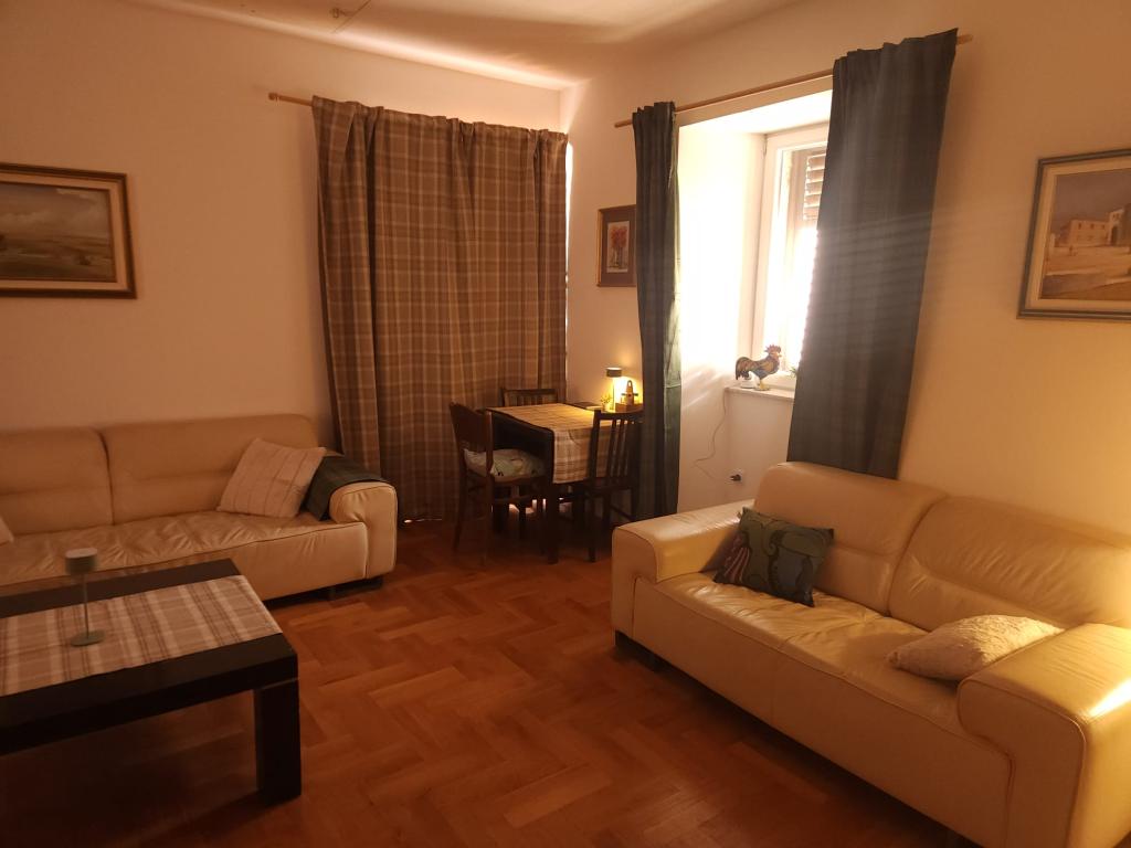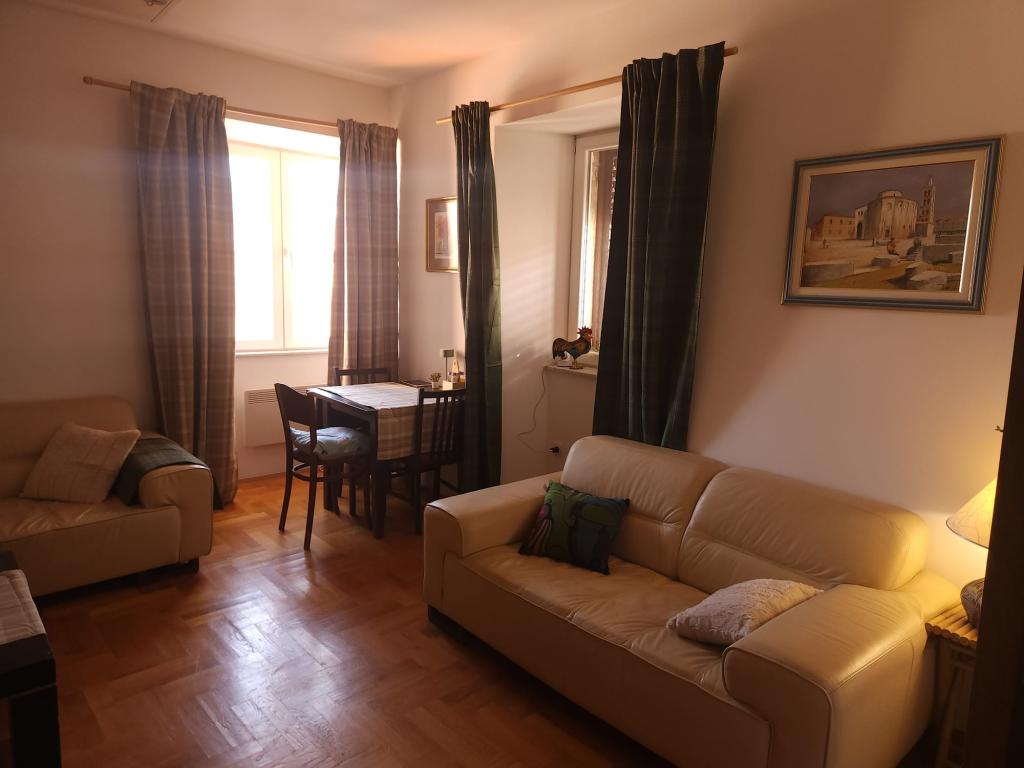 Romantický apartmán na Kalelargi – srdci starého Zadaru Tento okouzlující apartmán se nachází v autentické kamenné budově s výhledem na Kalelargu – nejznámější a nejmalebnější ulici ve městě, v samém srdci historického Zadaru. Náš apartmán, prodchnutý duchem minulých časů a zařízený s důrazem na detail, nabízí dokonalou kombinaci tradice a pohodlí. Apartmán je ideální pro páry hledající romantický únik, vyzařuje teplo a intimní atmosféru. Jemné barvy vytvářejí pocit klidu a elegance, zatímco okna z obývacího pokoje nabízejí neodolatelný výhled na promenádu, kterou denně procházejí místní obyvatelé, hudebníci a milovníci středomořského ducha. Západ slunce nad městem, šepot moře a zvuk kroků z Kalelargy promění váš pobyt v nezapomenutelný zážitek. Vítejte ve vašem zadarském útočišti – kde se historie, romantika a krása setkávají v jednom pohledu z okna.