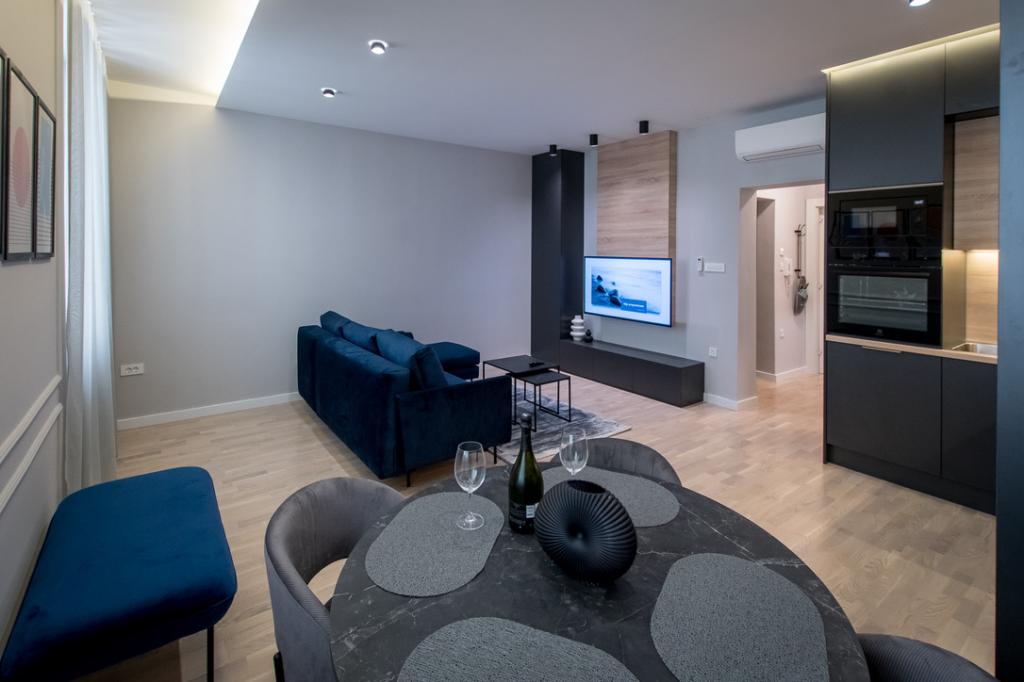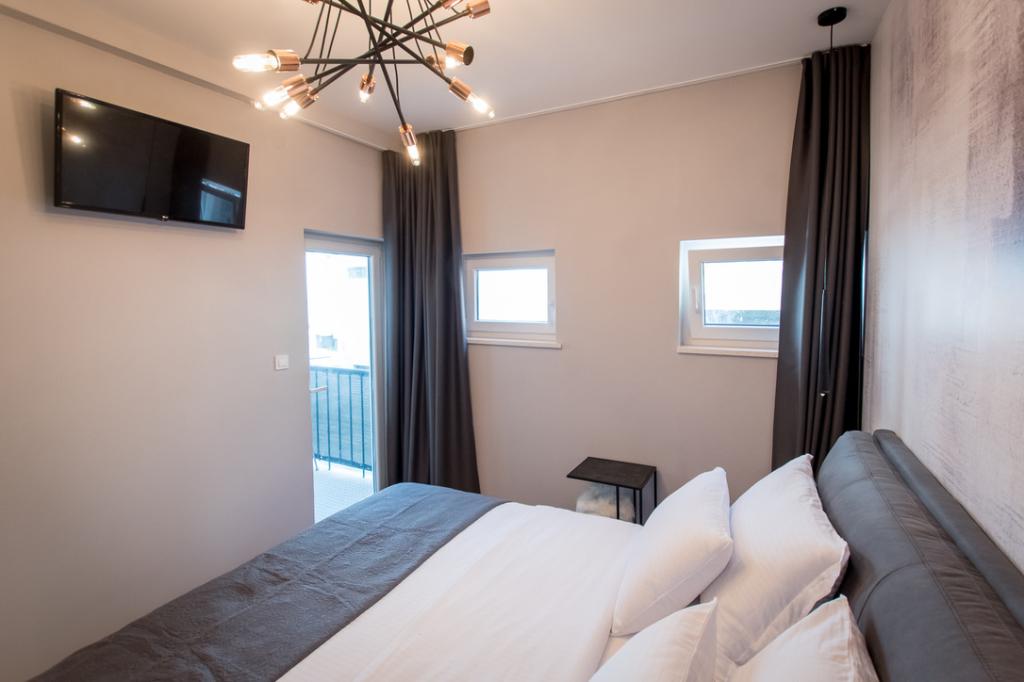 Moderní, nově zrekonstruovaný apartmán Emar Residence se nachází v samém centru starého města Zadar, vedle kostela sv. Krševana, asi 150 m od kostela sv. Donáta a Kalelarge, nedaleko starých hradeb Muraj, na jedna z nejkrásnějších ulic Poljany papež Aleksander III., v budově v 1. patře. Klidná lokalita v blízkosti tržnice, rybího trhu, parkoviště, autobusové a taxi stanice a MHD (100m). Apartmán nabízí bezplatné Wi-Fi, klimatizaci (chlazení-topení) a balkon. Apartmán má jednu ložnici s velkou manželskou postelí pro dvě osoby s ložním prádlem, šatní skříní, TV, klimatizací a balkonem. Koupelna se sprchovým koutem, pračka, vysoušeč vlasů, topení, ručníky. Obývací pokoj s kuchyní a jídelnou, plně vybavená kuchyň s myčkou, mikrovlnnou troubou, lednicí, troubou, varnou konvicí, velký trojsedák, velká TV s plochou obrazovkou, stůl se židlemi, psací stůl, žehlička, trezor, klimatizace, velká okna s pohled na staré město.