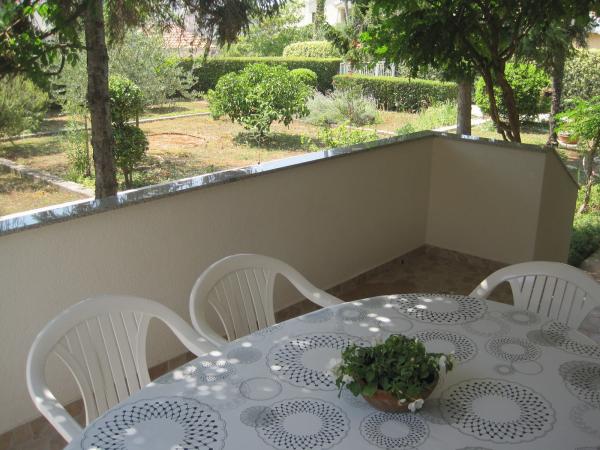 Apartmán Irena se nachází v části města zvané Puntamika-Borik, daleko od centra města, asi 3500 m. Byt se nachází v přízemí 80m2. Byt má tři ložnice, kuchyň, jídelna, koupelna a dvě zastřešené terasy. Ideální pro pobyty čtyři až šest osob. Je vybaven všemi potřebnými komfortem: klimatizace, satelitní TV přijímač, CD rádio přehrávač, mikrovlnná trouba, kávovar, rychlovarná konvice, bezdrátové připojení na internet. Pokoje jsou vybaveny veškeré potřebné ložní prádlo a ručníky. Dům je obklopen velkou zahradou a má vlastní parkoviště pro několik aut. Ve dvoře je velká krytá venkovní stůl s lavicemi vedle barbecue, že hosté mohou využít k volnému použití. Vzdálenost nejbližší pláž je asi 10 minut chůze (300 metrů). Pláže jsou písčité a oblázkové. V centru města jsme spojeni dvou autobusových linek, které provozují velmi často obecně v intervalech 15 až 20 minut. Jízda do města trvá asi patnáct minut. Autobusová zastávka je cca 100 metrů od domu.