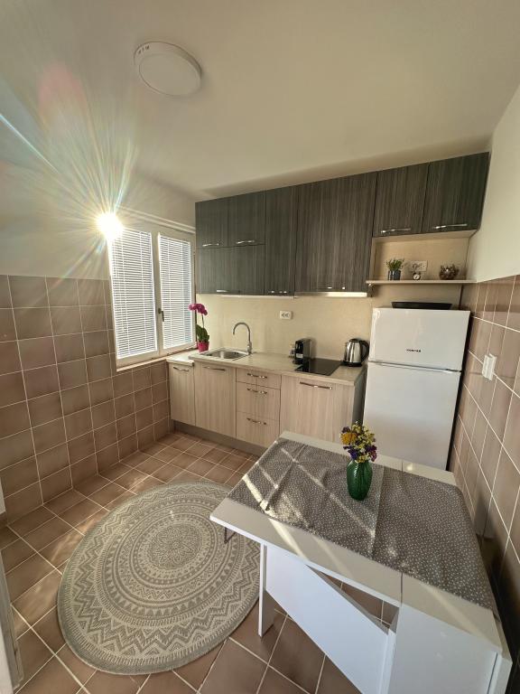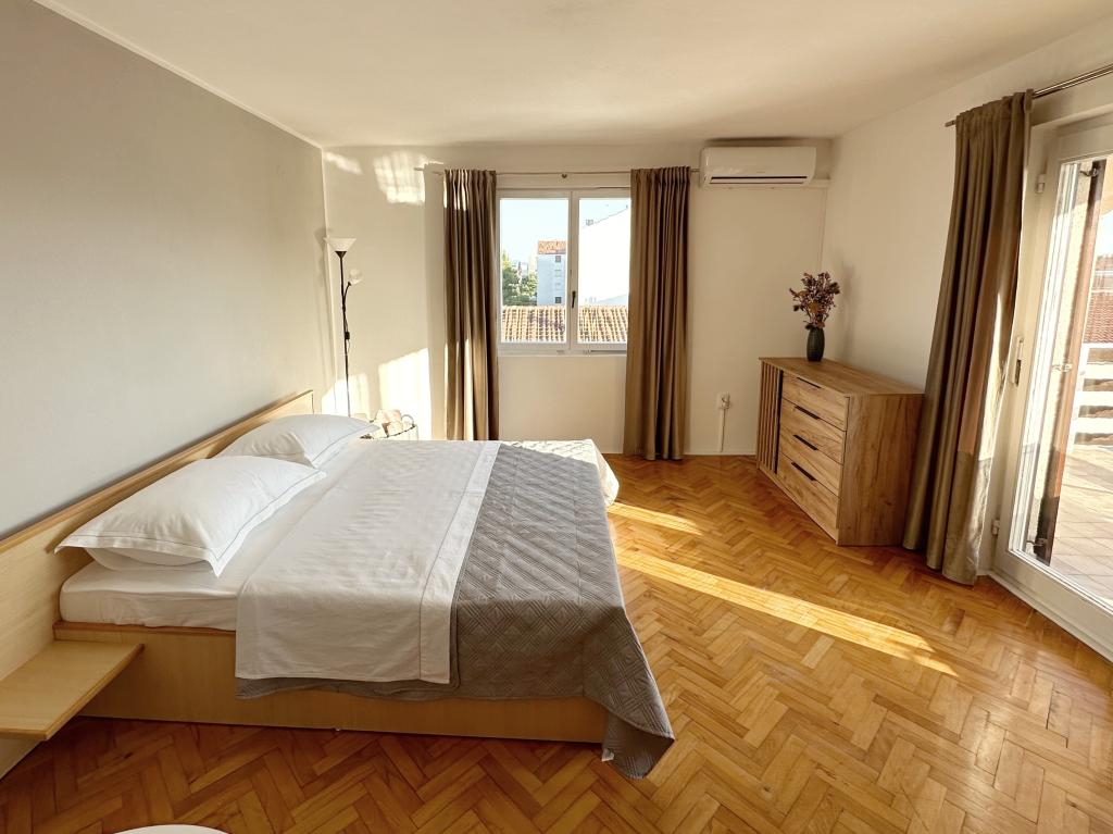 Vítejte v rodinném domě v plně vybaveném bytě, který se nachází ve třetím patře domu. Byt se nachází v Belafuži, v klidné části města, 2,2 km od centra města a pláže a 13 km od letiště. Plocha bytu je 80 m2, která zahrnuje koupelnu, tři ložnice, kuchyň a prostornou terasu. Apartmán je plně vybaven vším potřebným pro pobyt (2 klimatizace, pračka, mikrovlnná trouba, rychlovarná konvice, kávovar Nespresso, 2 smart TV a bezplatný Wi-Fi internet. Hosté, kteří si zvolí náš apartmán, mají k dispozici velké soukromé parkoviště. byt je ideální pro 6 osob.