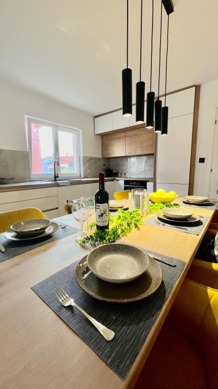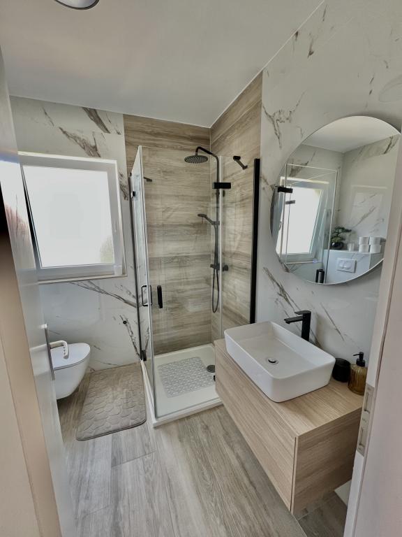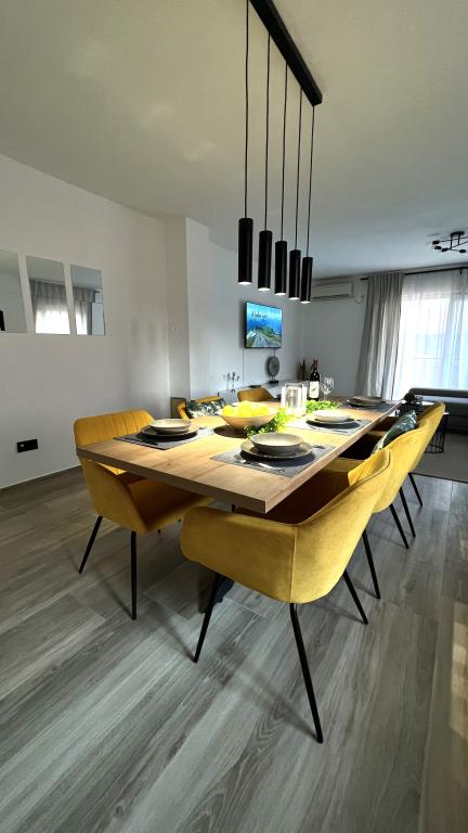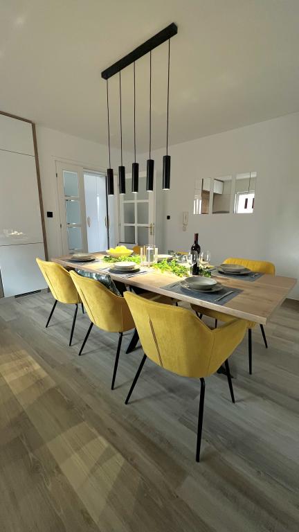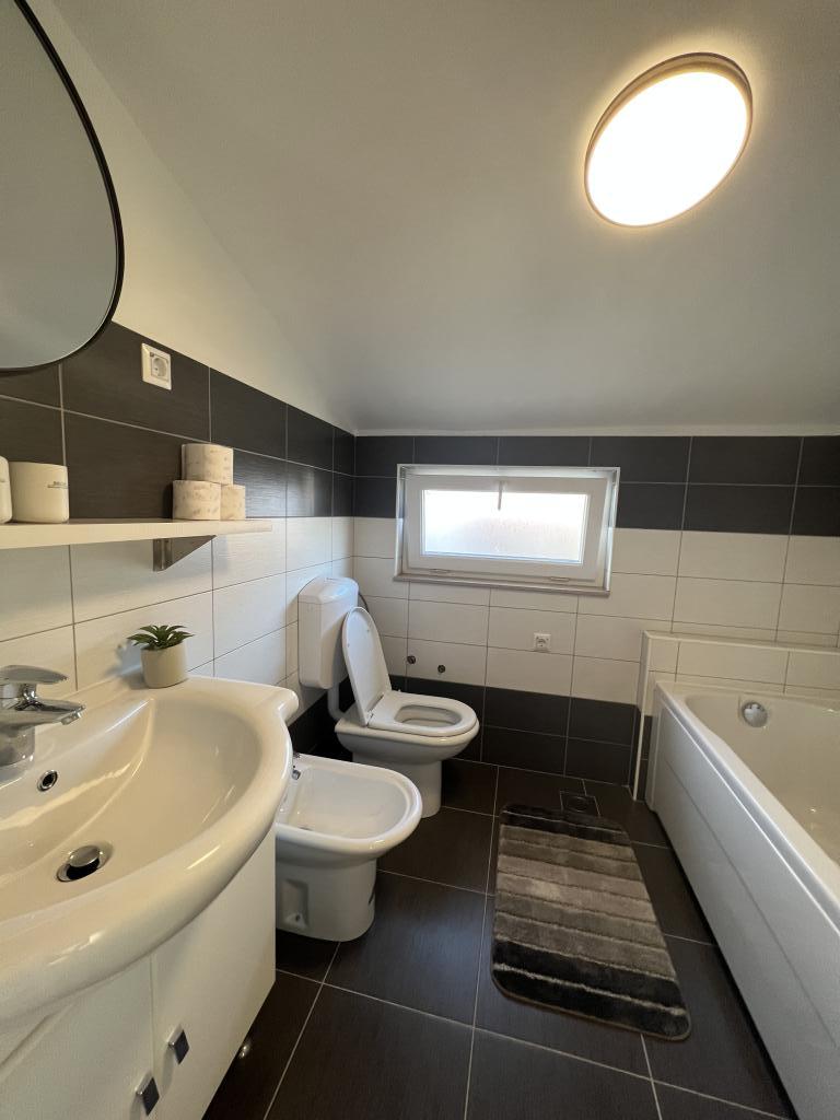 Specialitou tohoto bytu je krb. Tento klimatizovaný apartmán má soukromý vchod, 1 obývací pokoj, 3 samostatné ložnice a 2 koupelny s vanou a sprchou. V dobře vybavené kuchyni hosté najdou sporák, lednici, myčku a nádobí. V apartmánu je také gril. Tento prostorný apartmán nabízí pračku, příslušenství pro přípravu čaje a kávy, posezení a terasu s výhledem do zahrady. Jednotka má 4 lůžka.