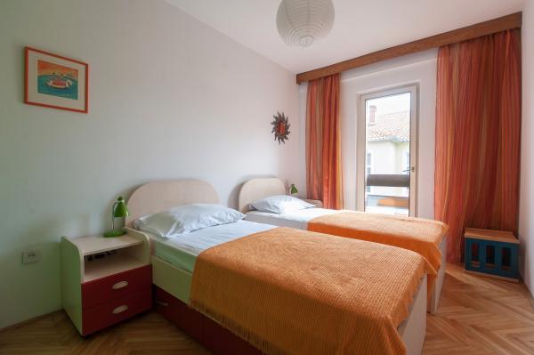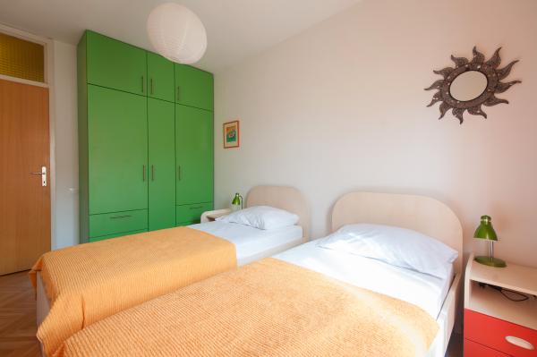 K pronájmu komfortní byt v prvním patře domu v Borik, v západní části města Zadar. Byt se nachází v blízkosti písečné pláže Borik a městské pláže USKOK (doporučujeme jít na pláž pěšky). Borička pláž se nachází v komplexu s restauracemi, bez dopravy, ale pokud dáváte přednost jiné pláže s méně letních davy, do 500 m se na hlavní silnici, v blízkosti Nin, Petrčane, Vir, Privlaka, Sabunike, Punta Skala ... Vzdálenost od bytu do centrum města je asi 4 km: do centra promenáda podél moře, a je možné použít městskou hromadnou dopravu (městských autobusů). Apartmán Marin se skládá ze dvou ložnic (jedna s manželskou postelí, zatímco další dvě samostatné postele), prostorná kuchyň s dostatkem pracovního prostoru a světla, příjemné jídelna a obývací pokoj, kde je pohovka, která snadno přeměněn na postel velikosti 160x200 cm. Z obývacího pokoje se otevírají na terasu se stolem a židlemi a jedné z ložnic má vlastní balkon, vhodné pro sušení. Protože jeho záběry náměstí bytu nabízí pohodlný pobyt pro více osob (apartmán je ideální pro rodiny s dětmi nebo pro dva páry). V bytě je klimatizované a má bezdrátové připojení na vysokorychlostní internet.