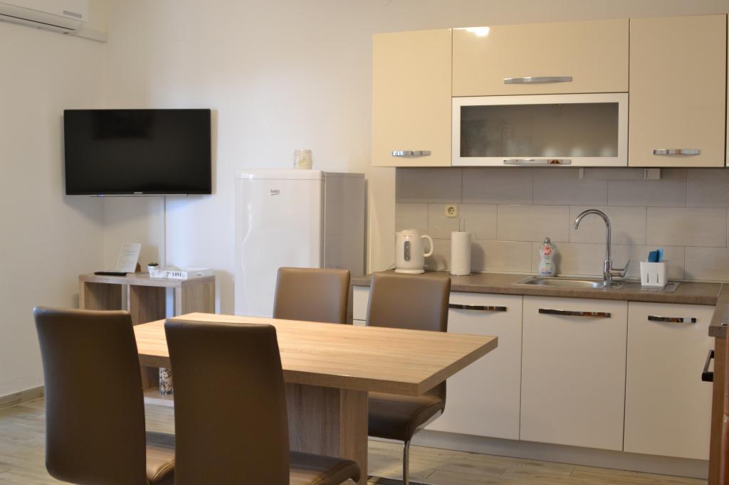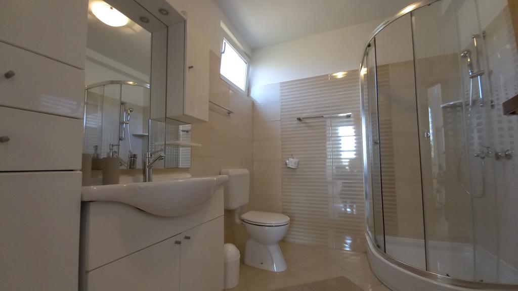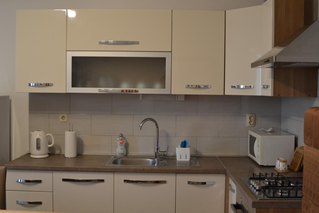 Pohodlný apartmán pro 3 osoby. Nachází se v přízemí rodinného domu s vlastním vchodem. Poloha je klidná, v blízkosti pláže a centra města. Uvnitř apartmánu je ložnice se 2 lůžky - (160x200 cm) a (90x200 cm), koupelna a pokoj s plně vybavenou kuchyní, jídelnou a pohovkou. K dispozici je bezplatné WI-FI, stejně jako klimatizace, televize, pračka, vysoušeč vlasů, sušák na prádlo, žehlička, mikrovlnná trouba, varná konvice. Parkování je zajištěno před budovou a je zdarma. Cesta na nejbližší pláž trvá asi 10 minut. Blízkost autobusového nádraží je 2 minuty chůze, přičemž v centru města jste autem za 10 minut.
