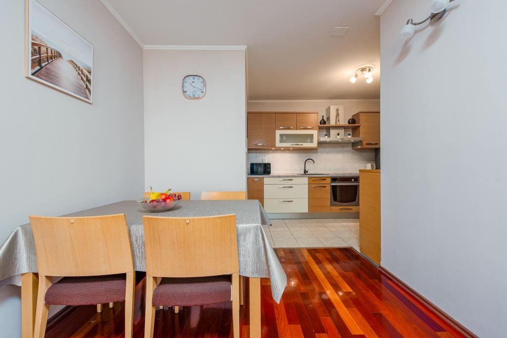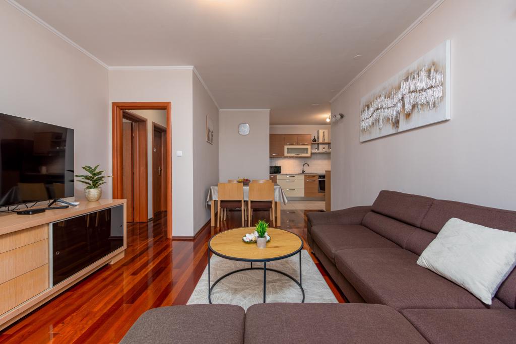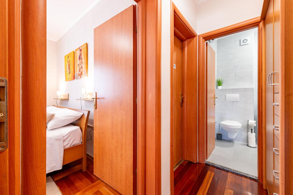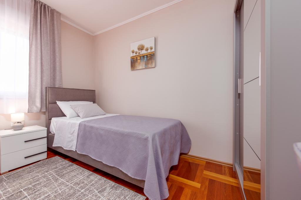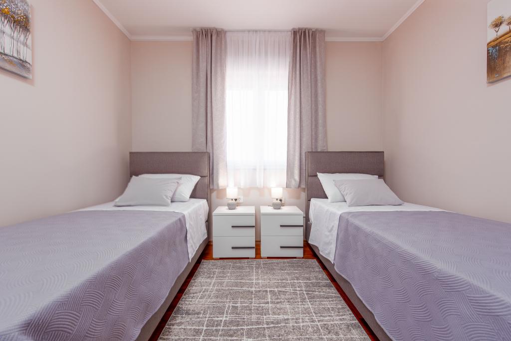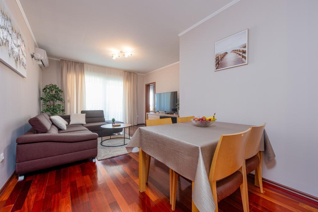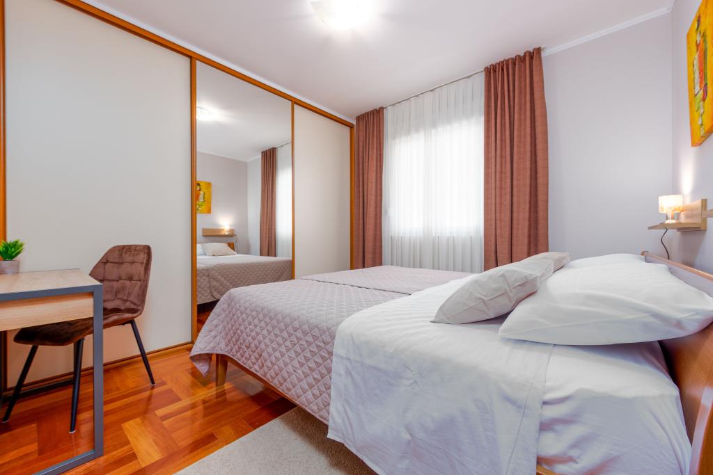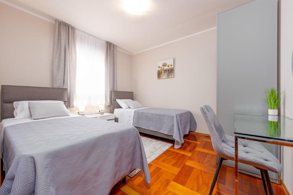 Apartmán Matea se skládá ze dvou ložnic, plně vybavené kuchyně, obývacího pokoje, koupelny a terasy. Nachází se v klidné a atraktivní lokalitě, v blízkosti starého města, pláže a vlakového nádraží, naproti nákupnímu centru City Galleria, kde se nachází řada obchodů, supermarket, lékárna, posilovna, kino, kavárny a další. Před budovou je parkoviště, které je pro hosty apartmánu zdarma. Kouření je v apartmánu zakázáno, s výjimkou terasy.
