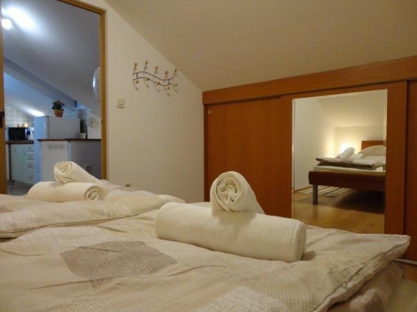 Byt Melanie se nachází v nejlepší pozici v centru města Zadar, kde všichni kroku. Byt se nachází v soukromém domě s vlastním vchodem. V prvním patře obývací vlastníky, zatímco byt v podkroví objektu, který dělá to navíc zvláštní a tudíž mnohem zábavnější, aby zůstali. Byt Melanie se nachází v místě, kde je možné všechno navštívil v několika krocích. To znamená, že autobusová zastávka 7 minut chůze, město veliké pláž Kolovare 9 minut chůze, zatímco staré město a všechny historické památky Zadaru tam pouhých 15 minut. Kromě toho, v blízkosti velkého nákupního centra, tržiště, trhu, nemocnice a poště. V blízkosti apartmánů jsou zdarma a bezplatné parkoviště. Jednoduše řečeno Pobyt v bytě Melani vše, co krok na místě.