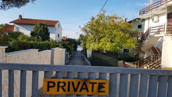 Byt se nachází v klidné lokalitě, 40m od pláže. Má rozlohu 140m2 se 3 ložnicemi, 1,5 koupelnou, kuchyní, obývacím pokojem a dvěma terasami s výhledem na moře. Je to skvělé pro velké rodiny nebo 2 rodiny, kterým nevadí žít společně a chtějí trochu ušetřit. Je také skvělé pro mladé páry, které se chtějí dobře bavit. Je dostatečně pohodlný pro 10 lidí. Pokud jich potřebuje přijít více, je možné cokoli :) Byt se nachází v horním patře domu na obrázku, takže je nádherný výhled. Apartmán je vybaven: TV, satelitem, DVD přehrávačem, klimatizací v každém pokoji, myčkou a pračkou. V bytě je také zdarma k dispozici Wi-Fi. Na zahradě je gril a stůl na stolní tenis. Parkování je možné ve dvoře. Nežijeme v domě, takže budete většinou sami. :)