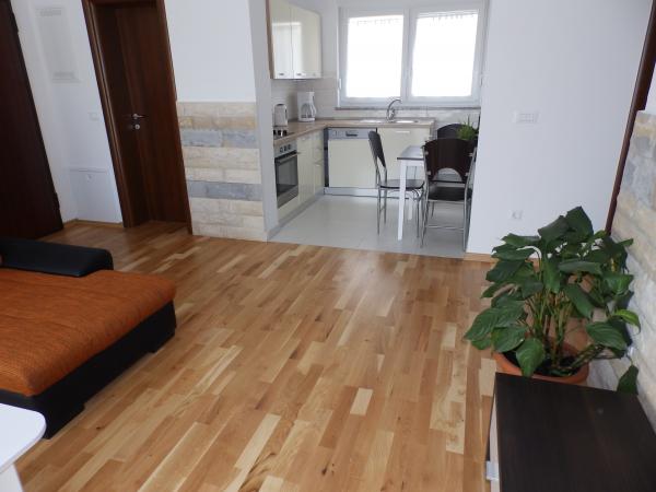 Byt Nagoya se nachází v přízemí novostavby 6 apartmánů. Nový plně vybavený byt v klidné oblasti, ideální pro dovolenou. Skládá se ze dvou ložnic, kuchyně, obývací pokoj, koupelna a WC. Má také velkou zahradu 90 m2 s krbem, která je ideální pro rodinnou dovolenou. K bytu náleží jedno parkovací místo. Wi-fi je zdarma.