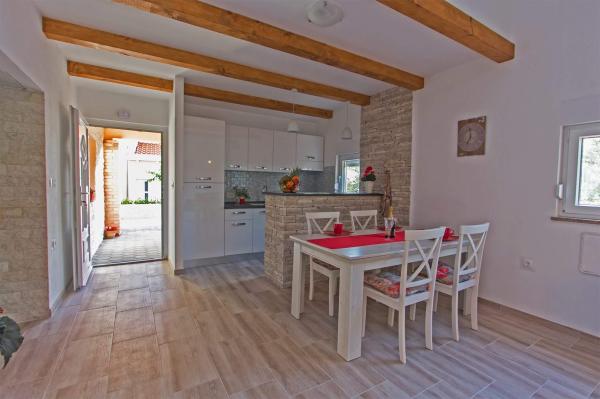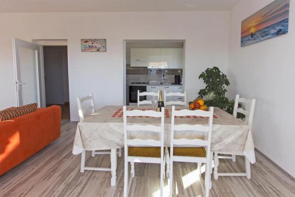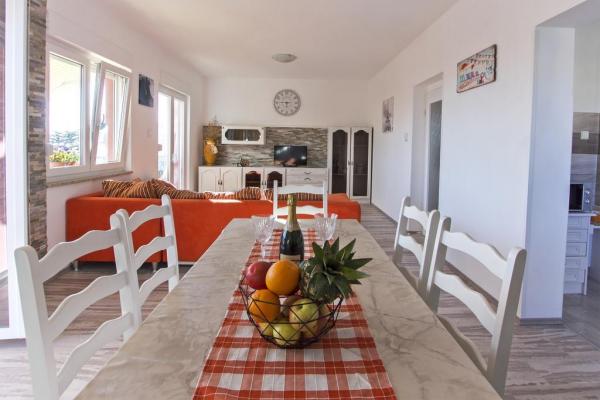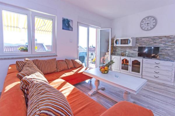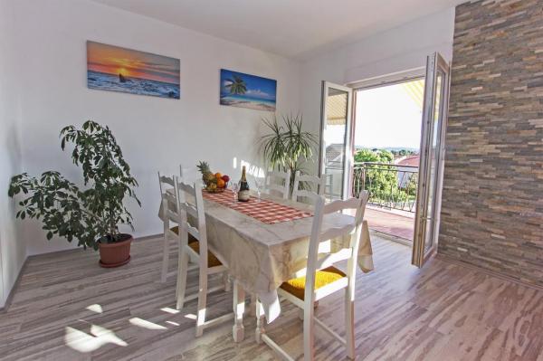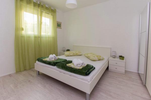 Plně vybavený apartmán, renovovaný v letošním roce s terasou a výhledem na moře. Byt se nachází v Diklu, turistické části města, méně než 5 minut chůze od pláže, v klidné ulici, pár minut chůze od klubů. Na pláži se nachází zábavní zařízení (mořské aktivity) Nedaleko jsou obchody, lékárna, banka, čerpací stanice, restaurace. Autobusové nádraží je méně než 5 minut chůze od domu. Velký apartmán ve 2. patře má 3 ložnice, koupelnu a WC, kuchyň a prostorný obývací pokoj s balkonem a výhledem na moře. Menší aparman se nachází v přízemí, vhodný pro 2 osoby, má kuchyň, koupelnu a pokoj. Obsahuje klimatizaci, televizi, internet.