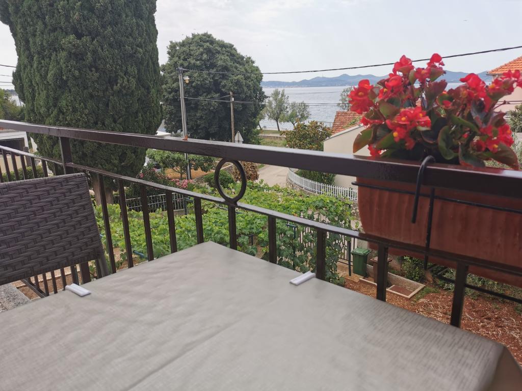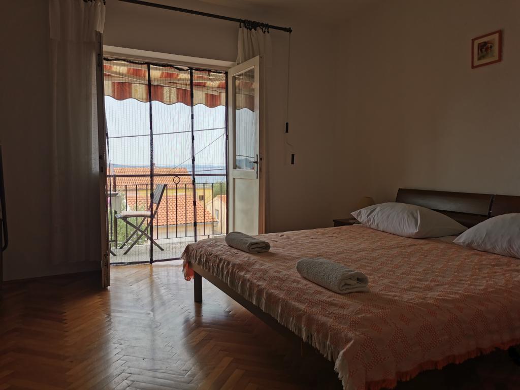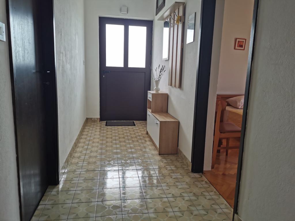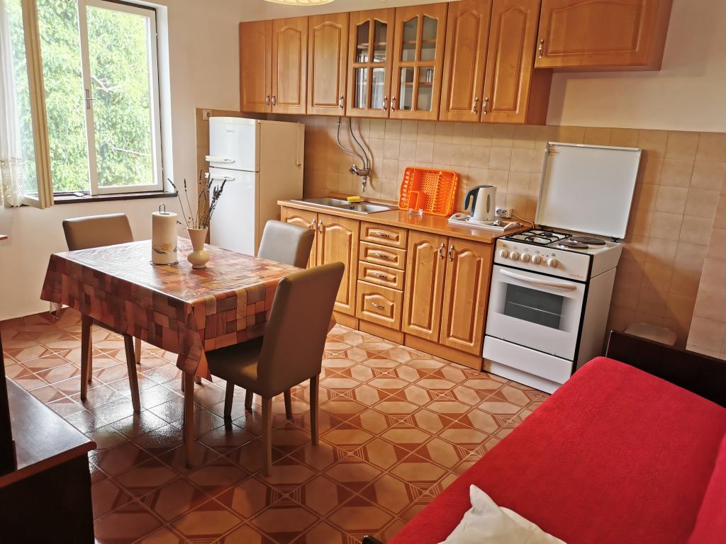 Apartmán až pro 5 osob v prvním patře rodinného domu v klidné části nedaleko města. Dvě ložnice s manželskými postelemi a přistýlkou v jídelně. Kuchyň, koupelna a velká terasa s výhledem na moře. Parkování pro hosty apartmánů zdarma. Ideální pro dva manželské páry nebo rodinu s dětmi.