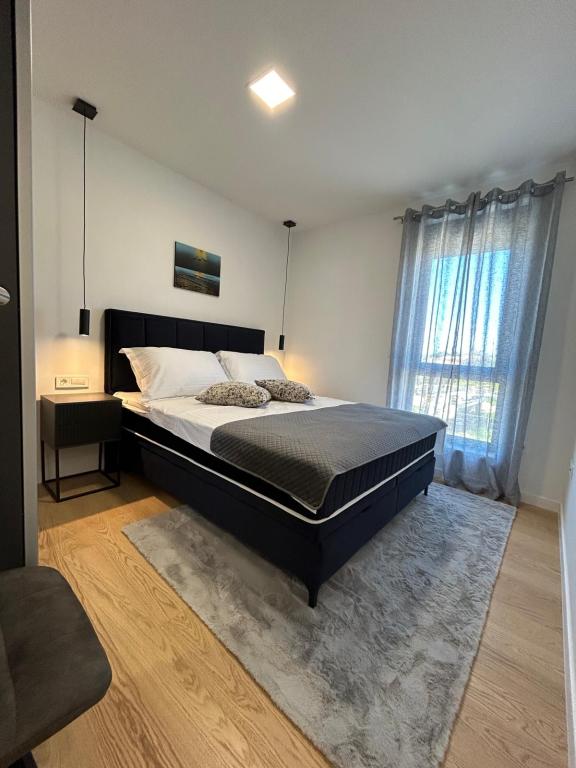 Nový!!! Apartmán se skládá z: dvou ložnic s velkými postelemi, prostorného obývacího pokoje s jídelnou a kuchyní, koupelny a přístupu na lodžii... Moderně zařízený apartmán v klidné části města, zajištěné parkovací místo, blízko pláže, obchodů, restaurací, promenády, tenisových kurtů, café baru, dětského hřiště, blízko přístavu - možnost pronájmu lodi,...