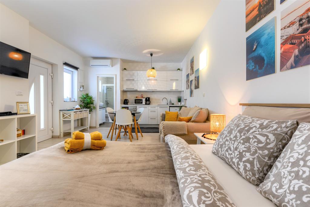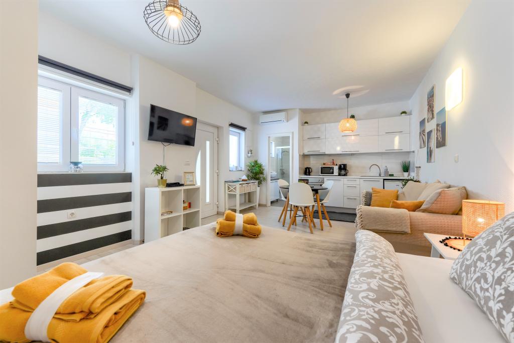 Studio Mare se nachází v části Zadaru zvané Brodarica. Samotný apartmán se nachází asi 500 metrů od moře a v bezprostřední blízkosti jsou vynikající restaurace (Mamma Mia, Roko, Rafaelo...), stejně jako kavárny, obchody, lékárna a tenisové kurty pro rekreaci. Hosté mají přístup do klimatizovaného ubytování s terasou a parkováním zdarma. Uvnitř apartmánu je vše, co hosté potřebují pro příjemný pobyt. V prostorách je zakázáno kouřit, ale terasa je ke kouření vždy k dispozici. Do centra města je to také 15 minut chůze, což je také skvělý důvod k procházce podél moře k jednomu z nejkrásnějších symbolů města Zadar, lodi, která vás jen několika tahy našich veslic dopraví do samotného srdce města a ke slavným památkám, které Zadar nabízí.