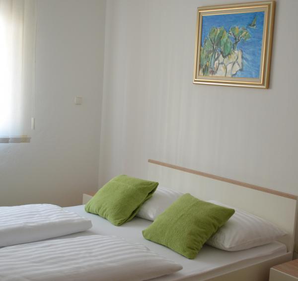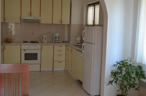 Plně vybavené a moderní oprevljem apartmán se dvěma ložnicemi se dvěma velkými manželskou postelí a obývací pokoj s rozkládací pohovkou pro jednu osobu, kuchyň, koupelna, terasa 20 m2, s výhledem do zahrady o 1000 m2 s využitím parku, s možností přehrávání tabulky tenis, šipky, bowling a jízda na kole. Byt je v soukromém domě v klidné lokalitě, s parkování pro 4 auta, v blízkosti restaurací, banky a pošta, spolu s masážemi za příplatek, stejně jako automobilové dopravy. Doprava pro přílety a odlety na letiště a nádraží zdarma. Pláž je 1000 metrů, a slavné pláže asi 1500 metrů. Centrum města je ve výšce 1500 metrů, a velkých diskontních prodejen v 300 metrů, spolu s malými obchody. Můžete Bezplatné využití grilu na pečení a cjelupne zahrada pro relaxaci a opalování.